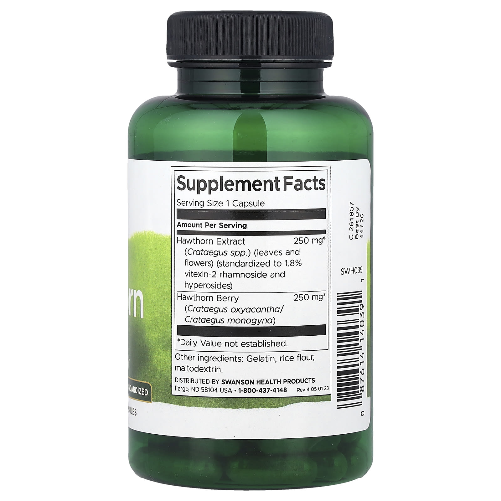 Порадуйте свое сердце с помощью Swanson Hawthorn! Это традиционное тонизирующее средство для сердечно-сосудистой системы содержит антиоксиданты, способствующие здоровому кровообращению в сердце. Наши капсулы содержат 250 мг стандартизированного экстракта (1,8% витексина и гиперозидов) с 250 мг цельных ягод боярышника.