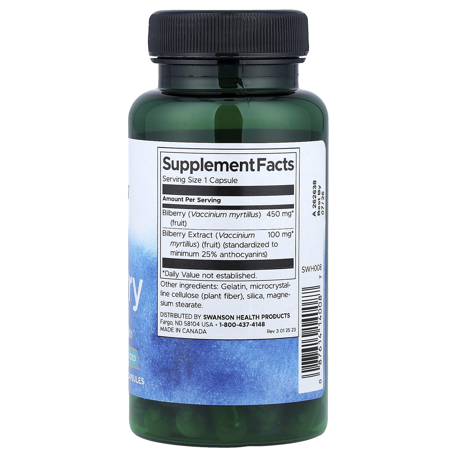 Черника от Swanson содержит антиоксиданты, которые помогают сохранять здоровье капилляров глаз, защищая от воздействия свободных радикалов. Стандартизировано до 25% антоцианов для гарантированной эффективности.