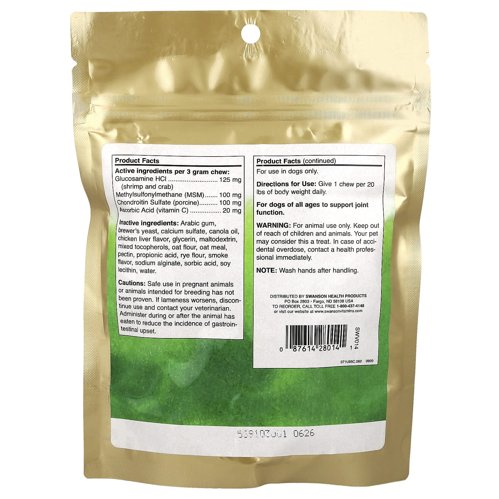 Сохраняйте бодрость в ногу с Фидо! Разработанный специально для питания тканей суставов и поддержания подвижности у активных собак, добавка для бедер и суставов с МСМ от Swanson Pet Nutrition сочетает глюкозамин, хондроитин, МСМ и витамин С во вкусной куриной печени и мягких жевательных таблетках со вкусом дыма, которые обязательно понравятся вашей собаке. Они - отличный способ поддержать здоровье суставов вашей собаки, чтобы поддерживать уровень активности в молодом возрасте в любом возрасте.