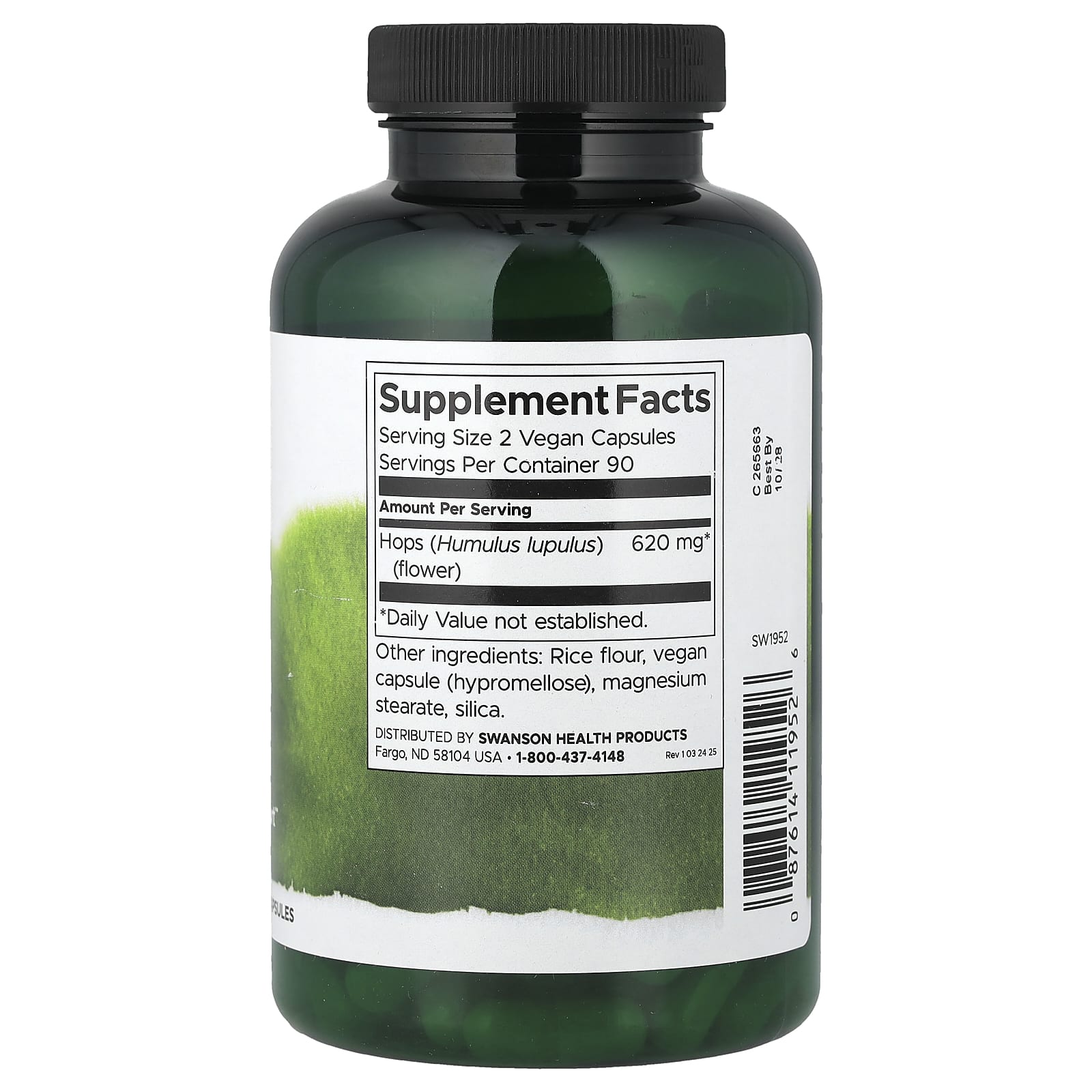 Расслабляющие свойства хмеля известны всем - ведь это значит, что после напряженного рабочего дня можно пить пиво. Хмель Swanson - это безспиртовое средство с тем же успокаивающим эффектом. Каждая капсула содержит 310 мг хмеля в форме полного спектра. Хмель эффективен отдельно, но он может быть еще более эффективным в сочетании с другими травами, такими как валериана, ромашка и пассифлора, поскольку они усиливают активность хмеля. Хмель также помогает организму выделять желудочный сок в желудочно-кишечный тракт, обеспечивая комплексное пищеварение, и является идеальным завершением ужина.