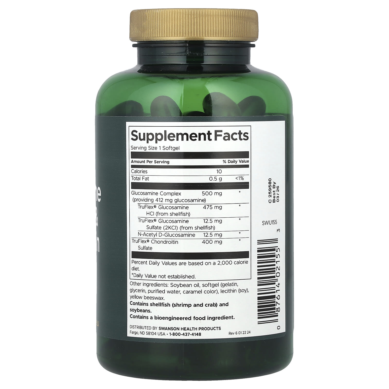 Когда ваши суставы нуждаются в питании, дайте им лучшее, что можно купить за деньги, с помощью глюкозаминового комплекса и хондроитинсульфата Swanson. Каждая мягкая таблетка содержит 400 мг хондроитинсульфата с 500 мг глюкозаминового комплекса, включая глюкозамин сульфат и глюкозамин гидрохлорид, с N-ацетил D-глюкозамином. Это отличный способ питать ткани, обеспечивающие бесперебойную работу суставов.