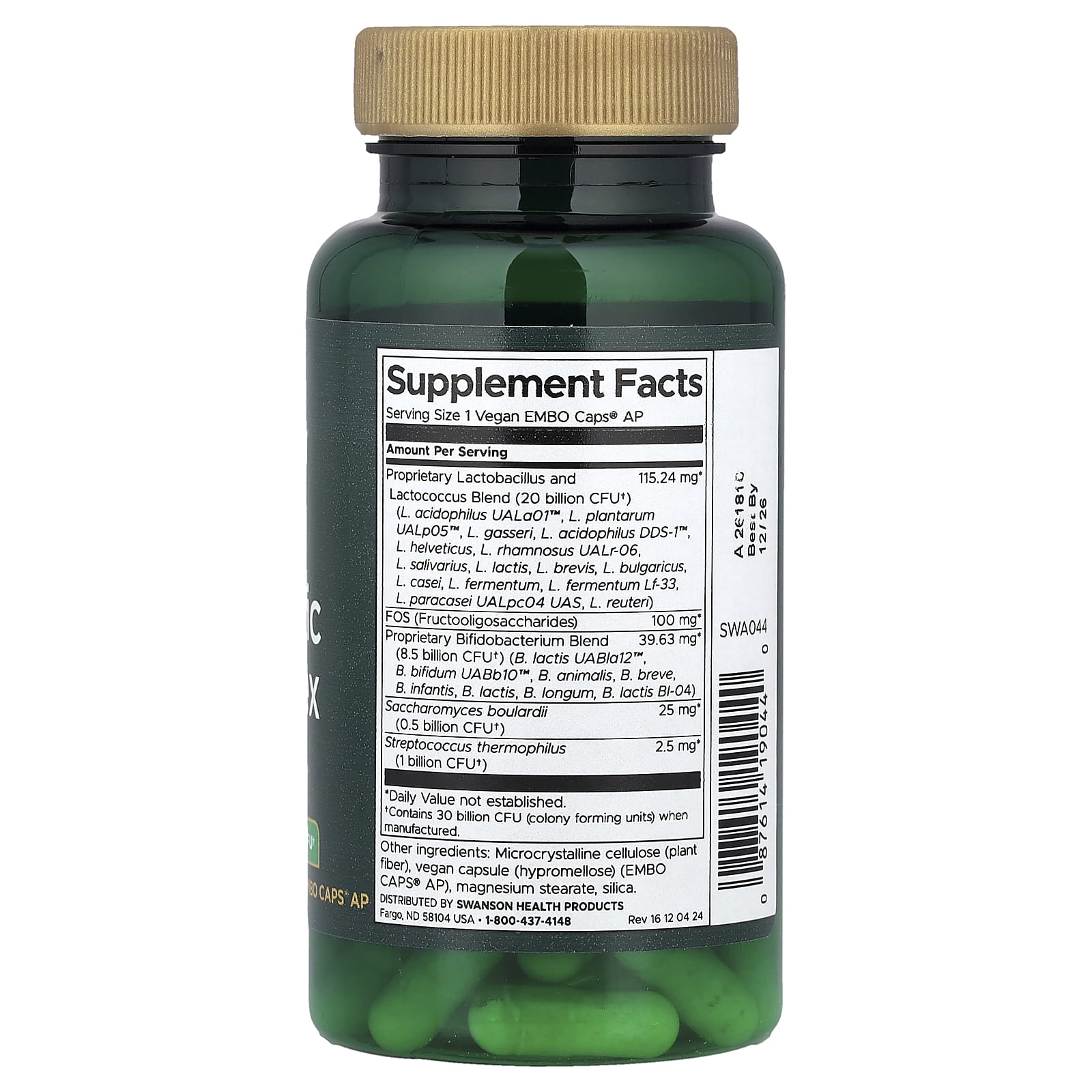 Ультрапробиотический комплекс Swanson - это лучшая пробиотическая поддержка широкого спектра действия, содержащая 30 миллиардов КОЕ из 25 тщательно отобранных штаммов, подтвержденных достоверными научными данными, включая семь видов бифидобактерий и пробиотические дрожжи Saccharomyces boulardii, а также пребиотические фруктоолигосахариды (ФОС) для их питания и помочь им развиваться. Это наша самая комплексная добавка для поддержания здорового биоразнообразия кишечника.