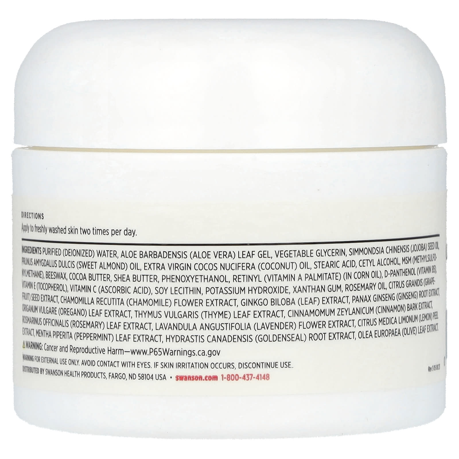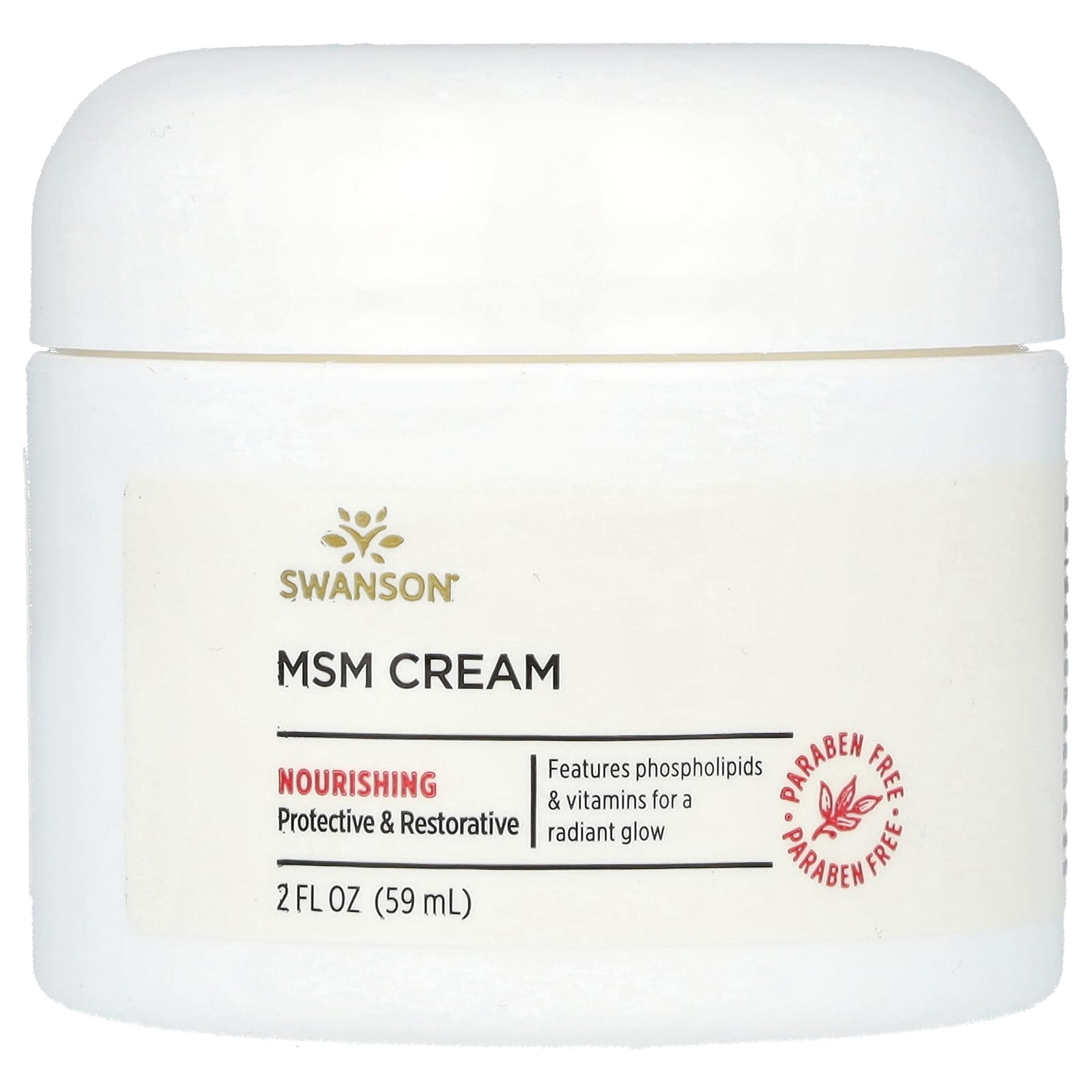 Подарите своей коже сияние с кремом с МСМ от Swanson для местного применения. Метилсульфонилметан (МСМ) служит хорошо усваиваемым источником органической серы, необходимой организму для формирования связей, скрепляющих ткани, что делает его важным для здоровья хрящей, связок, сухожилий, кожи, волос и ногтей. Этот питательный восстанавливающий крем содержит МСМ, гель алоэ вера, витамины A, E и B5, миндальное масло, масло жожоба, масло розмарина и экстракты ромашки, женьшеня, грейпфрута и гинкго билоба.