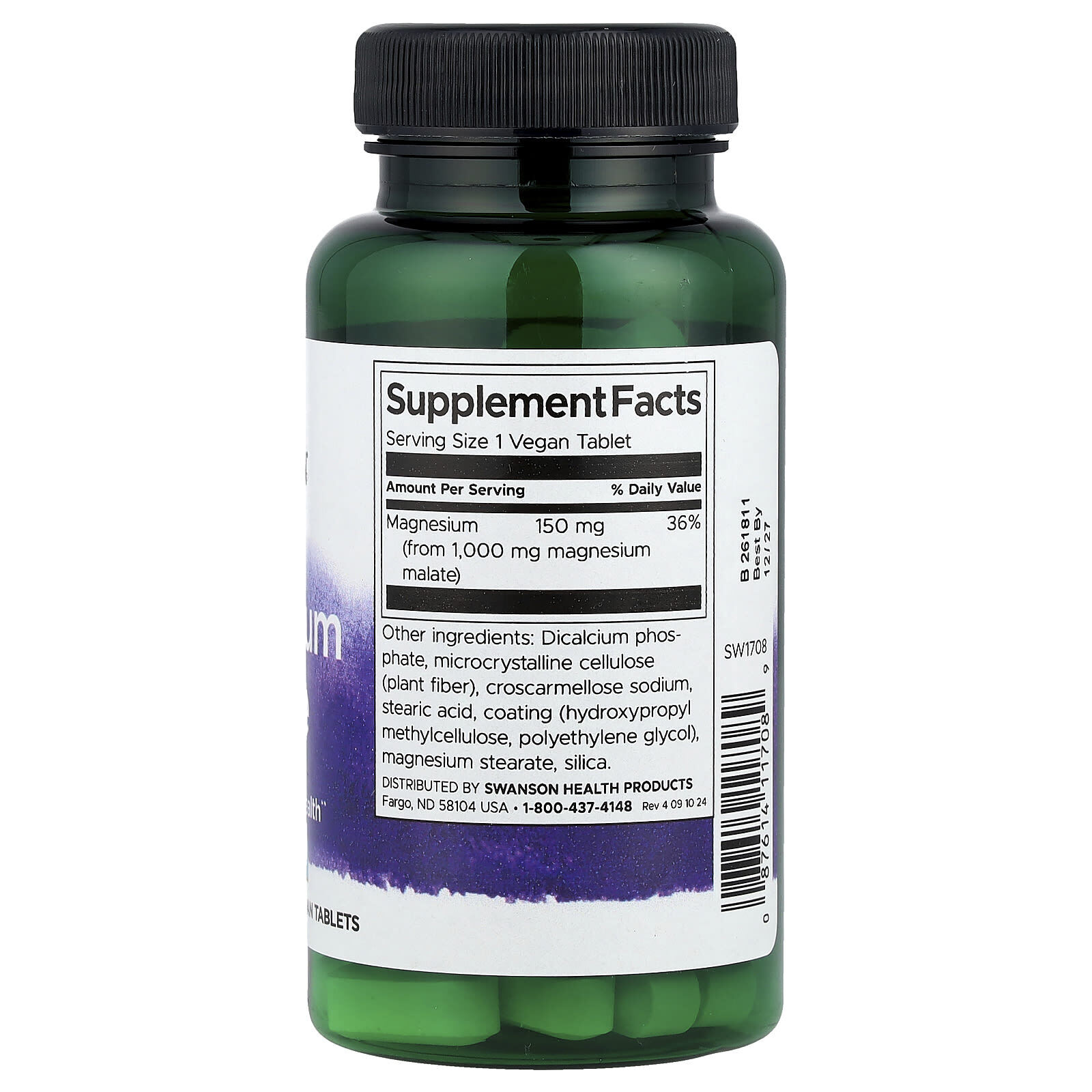 Малат магния Swanson — это уникальная форма добавки магния, полученная путём соединения магния с яблочной кислотой. Эти два питательных вещества прекрасно действуют синергетически. Магний поддерживает сердечно-сосудистую систему, здоровый уровень артериального давления, а также здоровье костей и мышц. Магний участвует более чем в 600 ферментативных реакциях в организме, а яблочная кислота присутствует почти в каждой клетке, где она является неотъемлемым компонентом для выработки клеточной энергии. По отдельности и вместе эти питательные вещества показали полезные свойства для здоровья нервной системы и мышц, физического комфорта и многого другого.