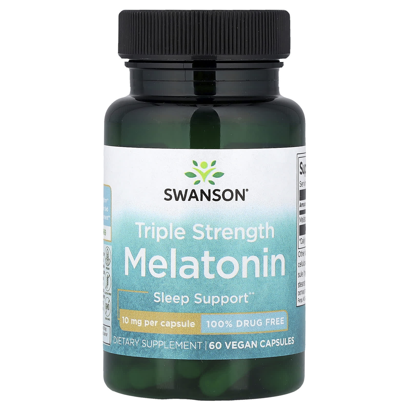 Swanson, мелатонин, тройная сила действия, 10 мг, 60 веганских капсул