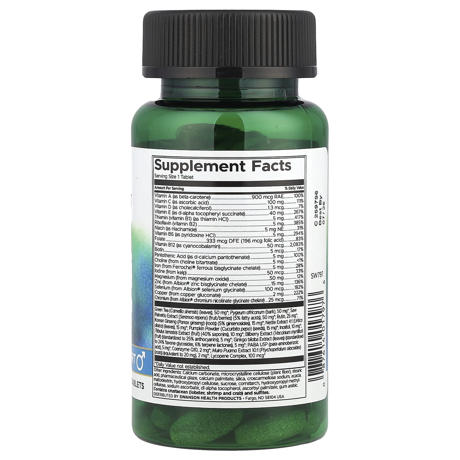 Мультивитаминный комплекс для мужчин с железом и поддержкой простаты Swanson — это усовершенствованная мультивитаминная и минеральная добавка для мужчин. Она сочетает в себе гинкго билоба, коэнзим Q10, чернику, женьшень и зеленый чай, а также более 30 необходимых витаминов, минералов и трав, включая аминокислотные хелаты хрома, селена, железа и цинка с высокой биодоступностью. Но мы не останавливаемся на достигнутом. Кроме того, мы добавили самые эффективные в мире питательные вещества и травы для поддержки простаты, а также сильнодействующие травы, которые веками использовались для поддержания мужского либидо и жизненной силы, такие как якорцы и муира пуама.