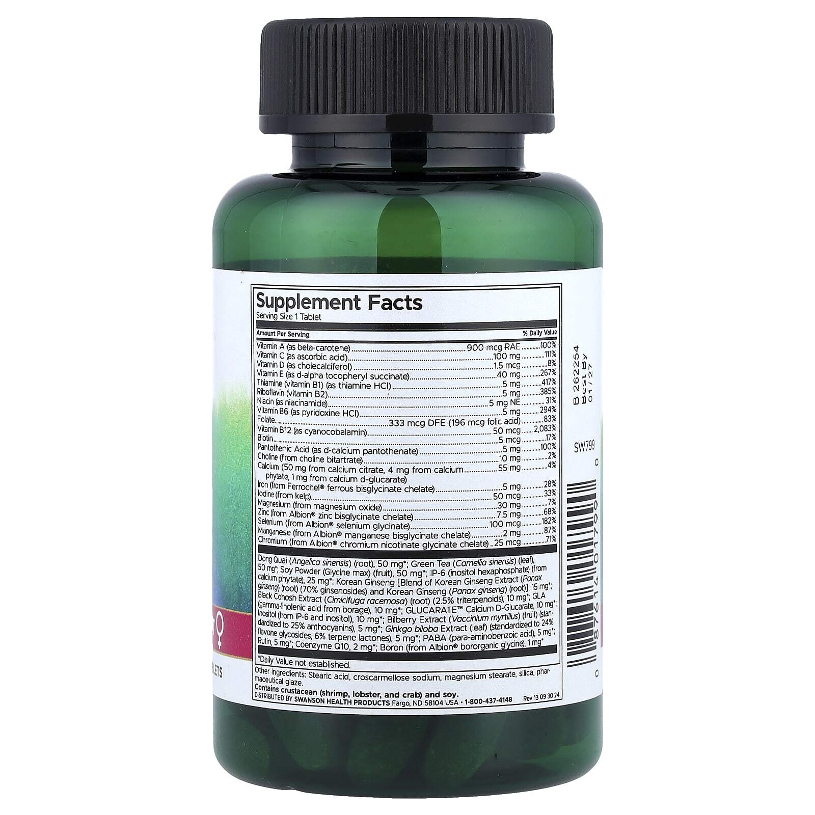 Мультивитаминный комплекс и гормональная поддержка для женщин от Swanson разработан специально для решения проблем с женским здоровьем, таких как менопауза, здоровье груди и ежемесячные гормональные колебания. Каждая таблетка содержит более 30 необходимых витаминов, трав и минералов, обогащенных соевым порошком, эффективными экстрактами трав и специальными ингредиентами, такими как IP-6 для здоровья клеток, D-глюкарат кальция для поддержания здорового уровня эстрогена и работы печени, а также витамины A и E для поддержки здоровые и сияющие глаза.