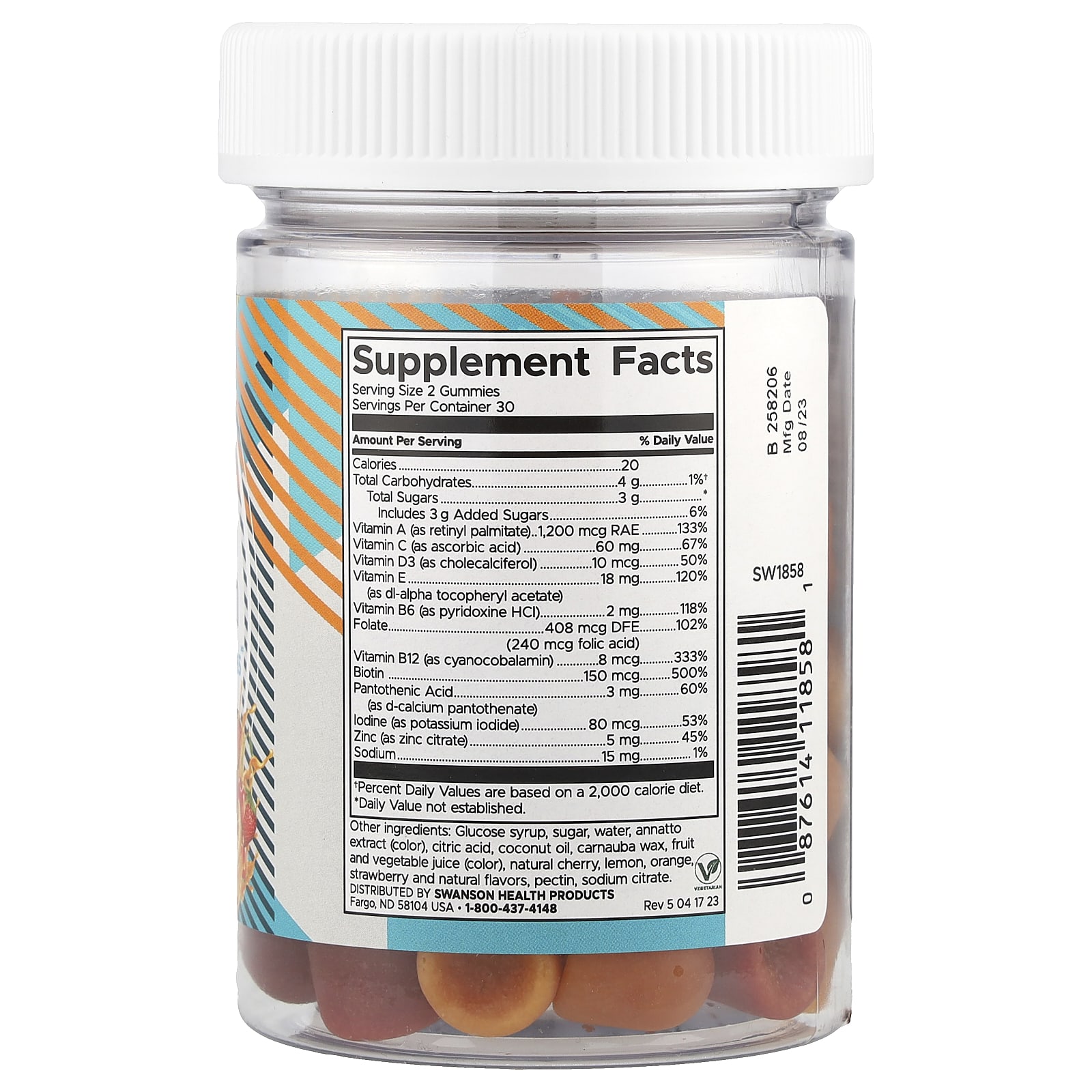 Крахмальная патока, сахар, вода, экстракт аннато (краситель), лимонная кислота, кокосовое масло, карнаубский воск, фруктово-овощной сок (краситель), натуральная вишня, лимон, апельсин, клубника и натуральные ароматизаторы, пектин, цитрат натрия.