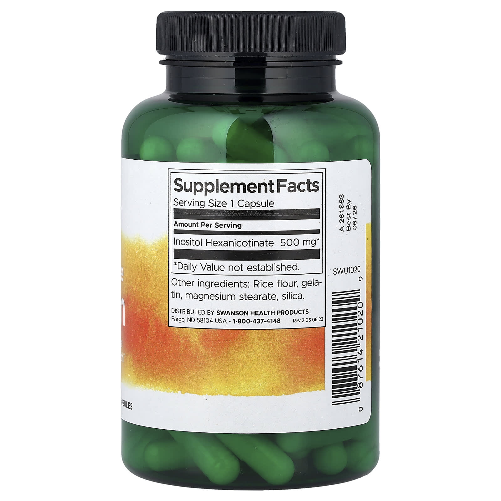 Ниацин без приливов Swanson обеспечивает все полезные свойства обычного ниацина для сердечно-сосудистой системы без неприятного ощущения приливов. Он устраняет естественный эффект ниацина для покраснения с помощью специальной формы витамина B3, известной как гексаникотинат инозитола. Каждая капсула содержит 500 мг ниацина из гексаникотината инозитола. Ниацин помогает организму усваивать углеводы и способствует здоровью сердечно-сосудистой системы.