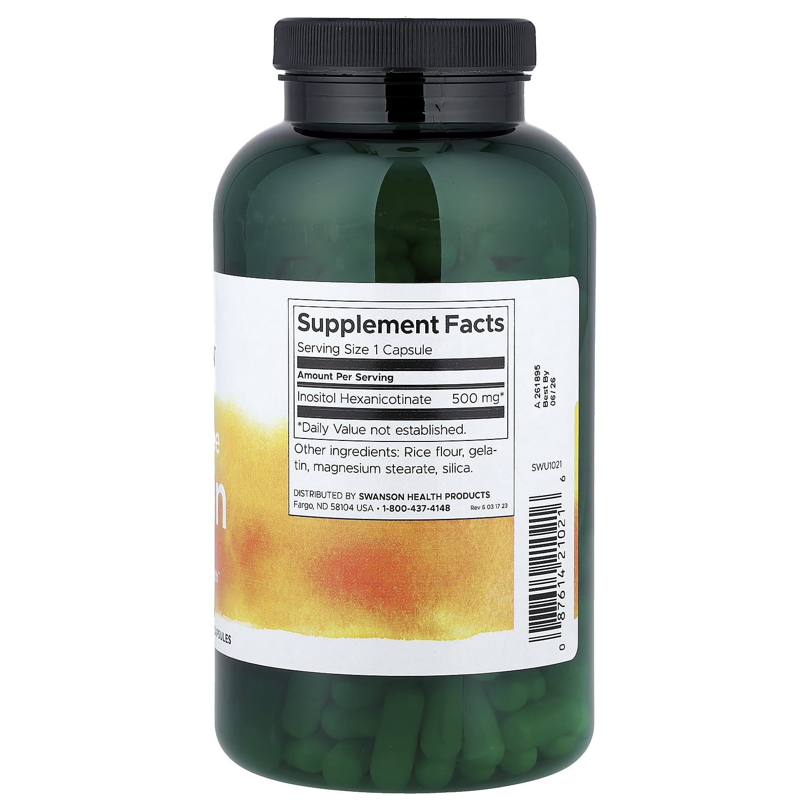 Ниацин без приливов Swanson обеспечивает все полезные свойства обычного ниацина для сердечно-сосудистой системы без неприятного ощущения приливов. Он устраняет естественный эффект ниацина для покраснения с помощью специальной формы витамина B3, известной как гексаникотинат инозитола. Каждая капсула содержит 500 мг ниацина из гексаникотината инозитола. Ниацин помогает организму усваивать углеводы и способствует здоровью сердечно-сосудистой системы.