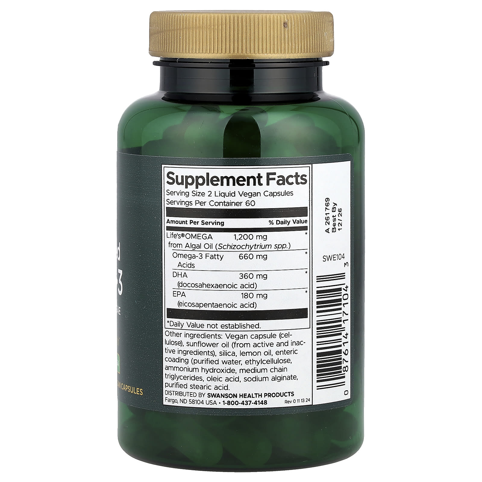 Важно позаботиться о своем здоровье и самочувствии. Но это даже лучше, если вы можете сделать это с омега-3, которые получают из возобновляемых растений. Омега-3 на растительной основе от компании Swanson и комплекс life's®OMEGA содержат ЭПК и ДГК из водорослей и помогают поддерживать здоровье мозга и сердца. Life's®OMEGA обеспечивает самую высокую концентрацию ЭПК и ДГК, доступную в продукте растительного происхождения. Вы можете наслаждаться этими капсулами с омега-3 на растительной основе, зная, что они естественным образом не содержат загрязняющих веществ, поскольку материал получен из морских водорослей, ферментированных в изолированной среде. Если вы ищете превосходный источник омега-3, это ваш ответ! На растительной основе со вкусом лимона, чтобы избежать неприятной отрыжки.