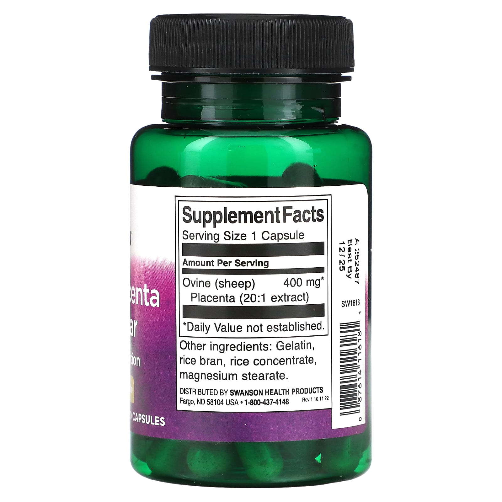 Овечья плацента стала одним из самых популярных средств для красоты в Голливуде благодаря довольным знаменитостям, которые называют ее «тканью молодости» за сохранение блестящих волос и эластичной, сияющей кожи. Дело в том, что овечья плацента содержит множество питательных веществ, которые способствуют образованию коллагена, омолаживающего ткани кожи и повышающего их способность удерживать влагу. Капсулы Swanson содержат концентрированный экстракт плаценты австралийской овцы в соотношении 20: 1.