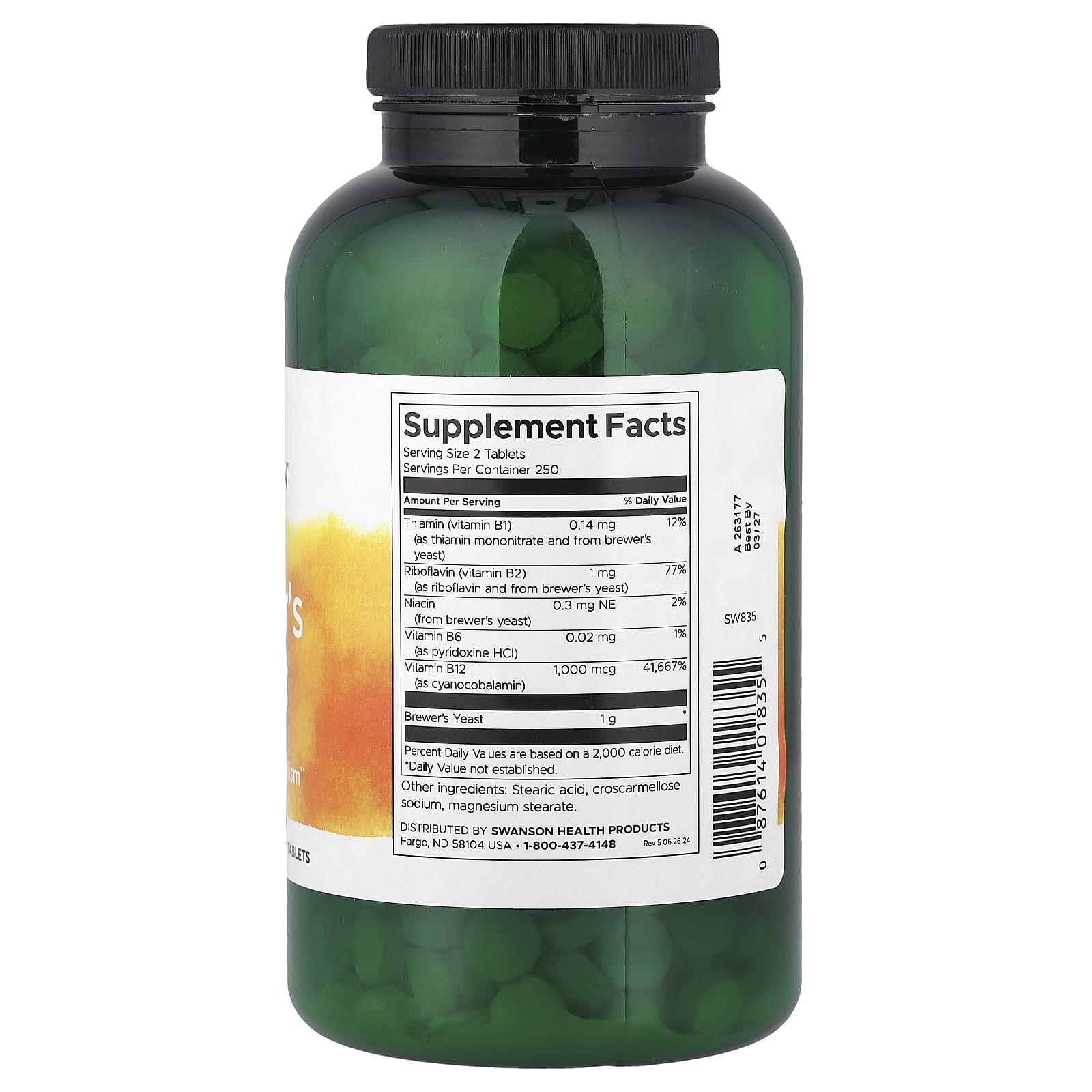 | Рибофлавин (витамин B2) (из рибофлавина и из пивных дрожжей) | 1 мг | 77% |