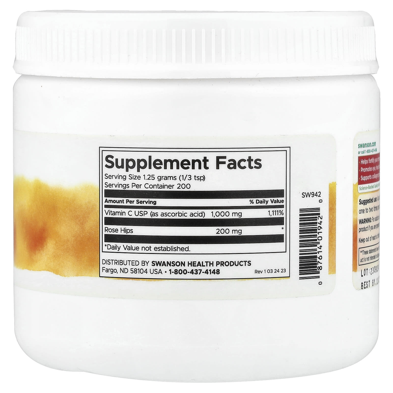 Swanson C-1000 в порошке с шиповником — идеальная добавка с витамином C для людей, которые испытывают проблемы с глотанием таблеток. Она позволяет превратить любой напиток в высокоэффективный источник антиоксидантной защиты. Всего одна треть чайной ложки, смешанная с водой или соком, обеспечивает 1000 мг витамина С, но это еще не все. Каждая порция также содержит 200 мг шиповника, богатого источника флавоноидных соединений, которые работают синергетически с витамином С, оптимизируя его способность нейтрализовать свободные радикалы.