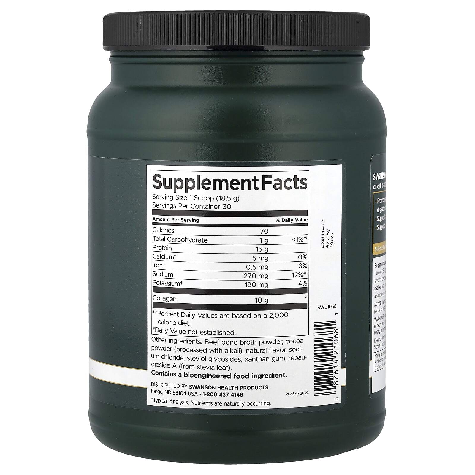 Swanson Real Food Bone Broth — это добавка с суперфудом, которая подходит для палеодиеты и кетодиеты, которая обеспечивает питание всего организма с преимуществами, которые вы жаждете: способствует повышению эластичности кожи, здоровью суставов, крепким костям и многому другому. Коллаген — самый распространенный белок в организме человека. Как компонент соединительной ткани он обеспечивает прочность и структуру всего организма, а также содержится в волосах, коже, ногтях, костях, суставах и желудочно-кишечном тракте.