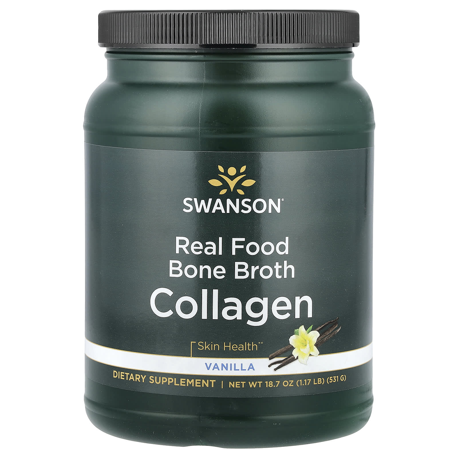 Swanson, Real Food, коллаген из костного бульона, ваниль, 531 г (1,17 фунта)