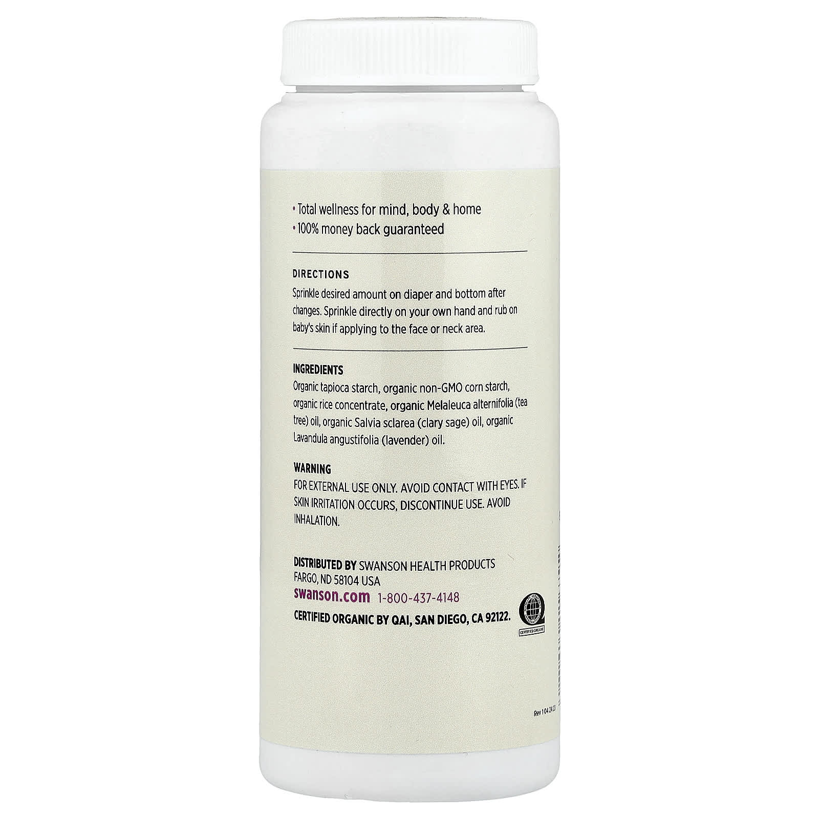 Наша сертифицированная органическая детская присыпка - это мягкая, не содержащая талька присыпка, в которой используются тапиоковый и кукурузный крахмалы, масло чайного дерева и масло мускатного шалфея, которые безопасно впитывают влагу, успокаивают и защищают чувствительную кожу.