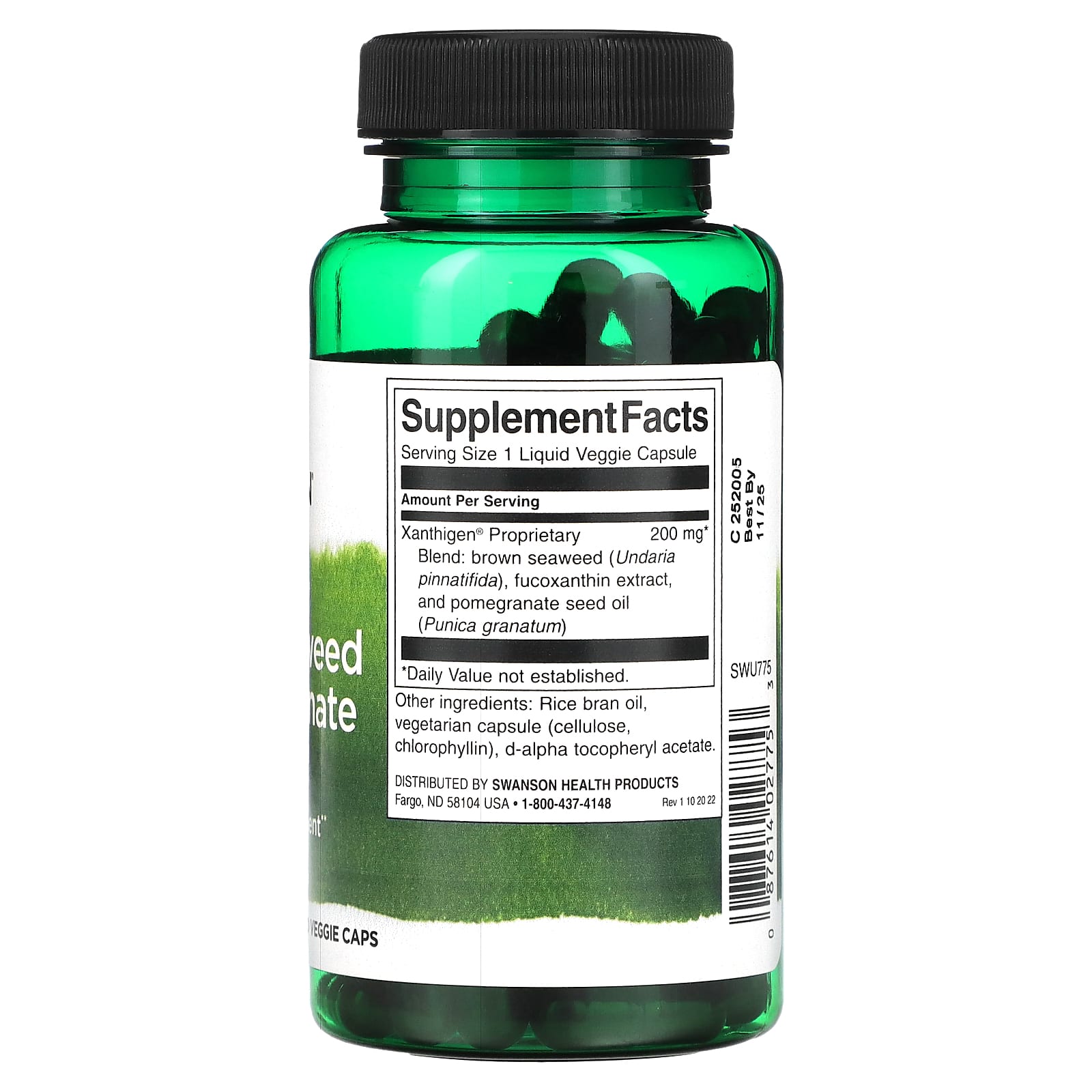 | Запатентованная смесь Xanthigen®: коричневые водоросли (Undaria pinnatifida), экстракт фукоксантина и масло гранатовых косточек (Punica granatum) | 200 мг | * |