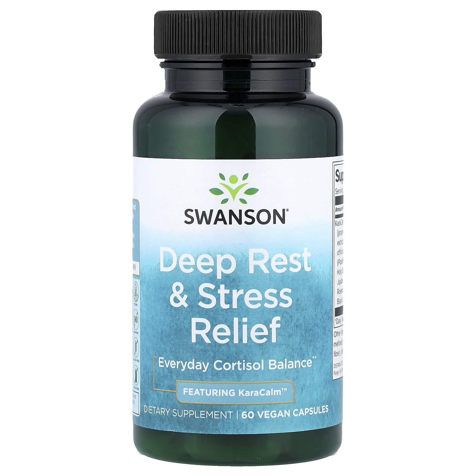 Глубокий отдых и снятие стресса от Swanson — это мягкий, растительный подход к решению проблем со сном и стрессом. Он содержит травяное сочетание для сна и стресса под названием KaraCalm™. Это смесь проверенных временем растительных компонентов, которые помогают снизить уровень кортизола, гормона стресса, и способствуют здоровому циркадному ритму. KaraCalm™ состоит из экстрактов валерианы, пассифлоры, базилика священного, ююбы, розмарина и семян черного тмина. Валериана традиционно используется для нормализации сна, базилик священный и розмарин используются для снятия стресса и улучшения качества сна, пассифлора и ююба являются надежными средствами для расслабления, а семена черного тмина (Nigella sativa) содержат полифенолы-антиоксиданты для защиты организма от окислительного стресса.