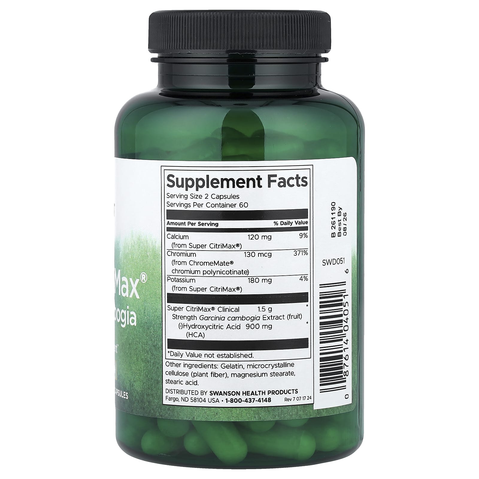 Если вы один из миллионов людей по всей стране, которые борются с нежелательными фунтами, у Swanson есть отличные новости для вас — гарциния камбоджийская с клинически доказанной эффективностью Super CitriMax вам поможет! Гидроксилимонная кислота (ГЛК), экстракт из гарцинии камбоджийской, в течение многих лет была популярным дополнением к диете, но эффективность продуктов с ГЛК может сильно различаться: от 0 до 50% ГЛК. Экстракт, входящий в состав Super CitriMax с клинически доказанной эффективностью, содержит мощную концентрацию 60% ГЛК, обеспечивающую надежную эффективность, в каждой капсуле, но это еще не все. Эта специальная формула также содержит хром ChromeMate, связанный с ниацином, для повышения эффективности ГЛК и достижения еще лучших результатов. В ходе клинических испытаний было продемонстрировано, что сочетание ГЛК и хрома, связанного с ниацином, является безопасным и эффективным средством для снижения веса, которое может помочь уменьшить излишние жировые отложения и повысить здоровый уровень липидов в крови в рамках разумной диеты и программы тренировок. Кроме того, он способствует здоровому уровню серотонина, помогая сохранять позитивный настрой. Сделайте его частью своего ежедневного рациона и убедитесь в его эффективности.
