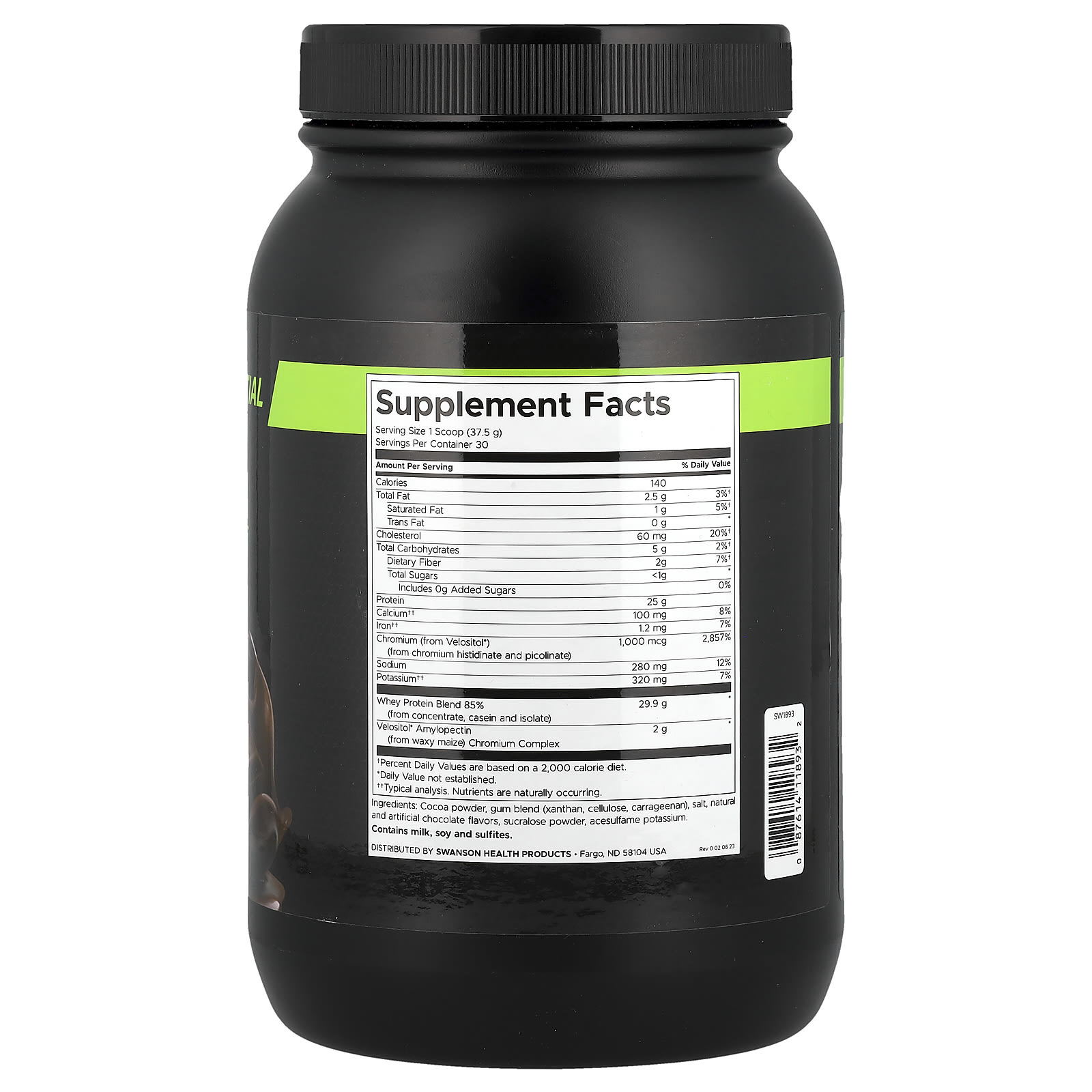 | Хром (из Velositol®) (из гистидината хрома и пиколината хрома) | 1000 мкг | 2857% |