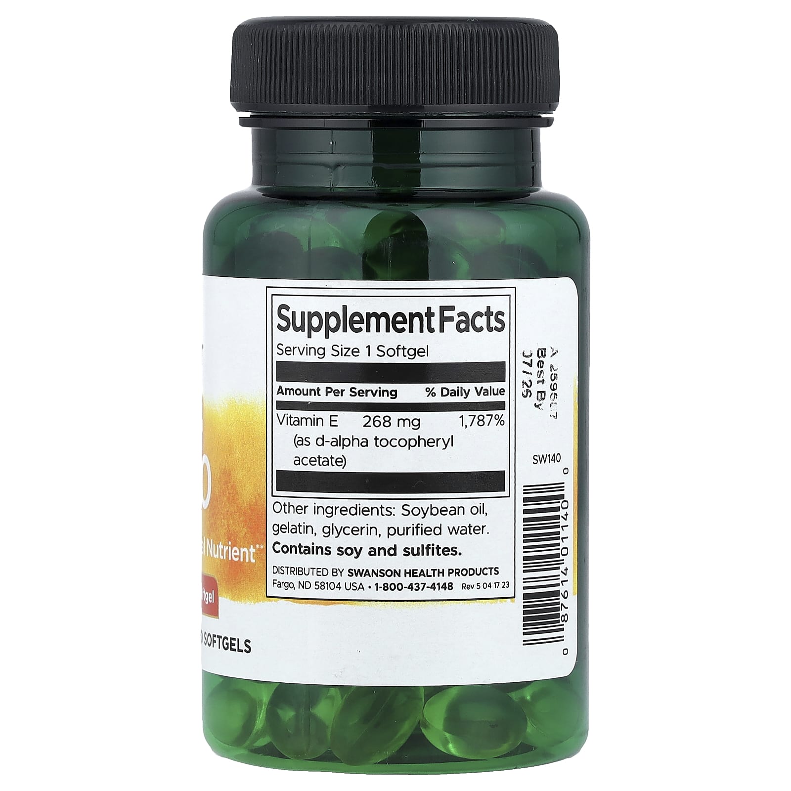 Хотя витамин E обеспечивает ценную питательную поддержку для здоровья сердца и сердечно-сосудистой системы, его действие не ограничивается лишь пользой для сердца. Антиоксидантные свойства витамина E помогают защитить жизненно важные ткани организма от разрушительного воздействия свободных радикалов. Добавка E-400 с натуральным витамином E от Swanson в капсулах с высокой усвояемостью содержит 100% d-альфа токоферила (витамин E).