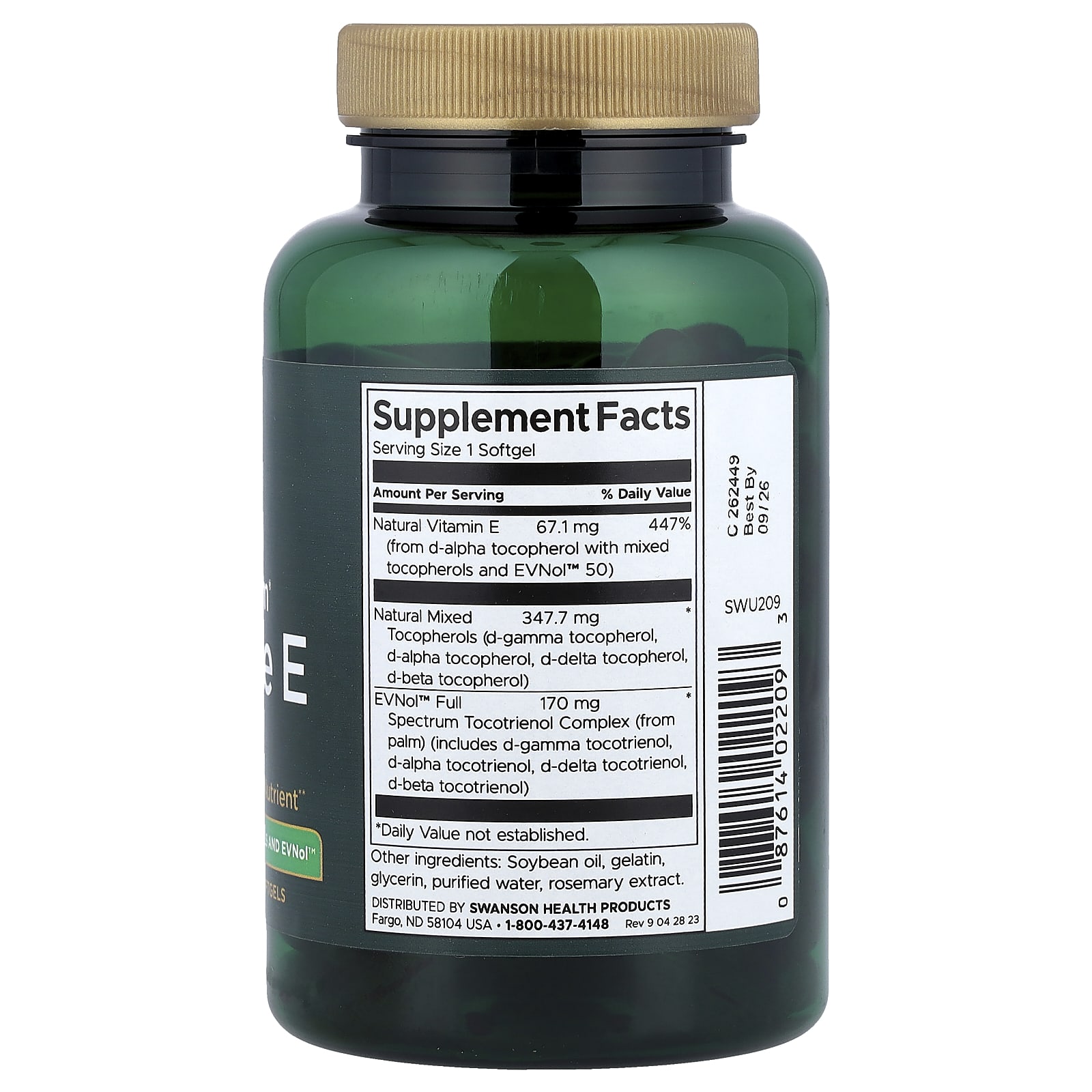 Swanson Full Spectrum E с токотриенолами — это полноценная добавка с витамином Е. Антиоксидантная защита этой формулы помогает защитить клетки от вредного воздействия свободных радикалов. Каждая капсула с высокой биодоступностью содержит 100 МЕ витамина Е из d-альфа-токоферола, а также полный спектр других токоферолов, включая d-гамма-токоферол в самой высокой концентрации и синергетическую поддержку в виде комплекса токотриенолов полного спектра. Эти родственники токоферолов действуют как мощные антиоксиданты, которые оптимизируют активность витамина E по нейтрализации свободных радикалов для поддержания здоровья сердечно-сосудистой системы, здоровья клеток и многого другого.