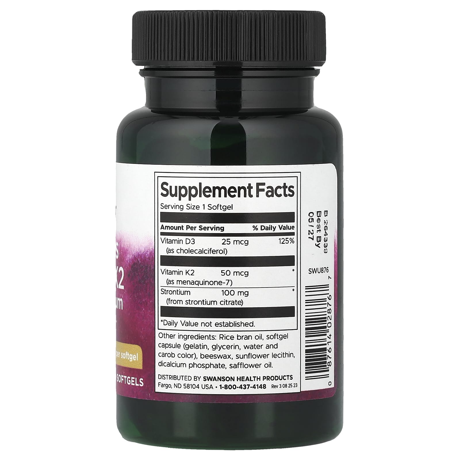 Если вы ищете серьезное питание для укрепления костей, витамины D3 и K2 со стронцием от Swanson обеспечат вас. Микроэлемент стронций, химически похожий на кальций, играет важную роль в формировании костей, помогая поддерживать нормальную минеральную плотность костей. Но если вы не употребляете много морепродуктов каждый день, вы, вероятно, не получите их очень много в своем рационе. Наши капсулы с витаминами D3 и K2 со стронций содержат 100 мг стронция из цитрата стронция, обогащенного большим количеством витамина D3 и витамина K2 для оптимального усвоения.