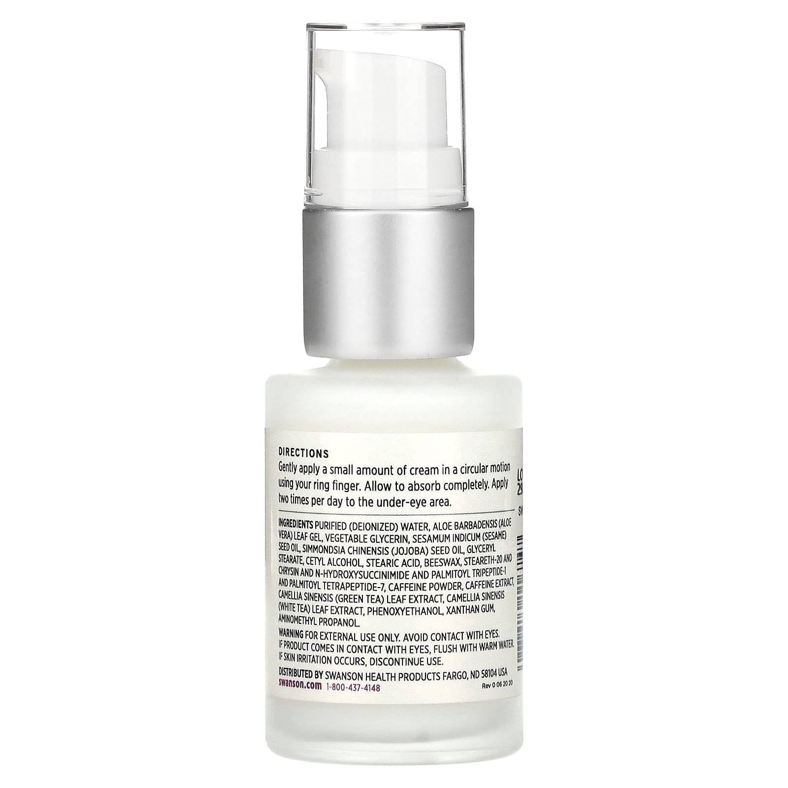 Восстанавливающий крем для кожи вокруг глаз с кофеином от Swanson Premium Brand® - это антивозрастная формула для нежной области под глазами. Этот питательный крем обеспечивает здоровую, гладкую и молодую кожу вокруг глаз благодаря мощной антиоксидантной поддержке. Кофеин, который традиционно используется во многих средствах для ухода за кожей, помогает улучшить цвет лица. Другие ингредиенты, такие как алоэ, масло жожоба и экстракт листьев зеленого чая, успокаивают кожу и поддерживают постоянное увлажнение кожи. Используйте этот роскошный крем два раза в день для омоложения кожи под глазами.