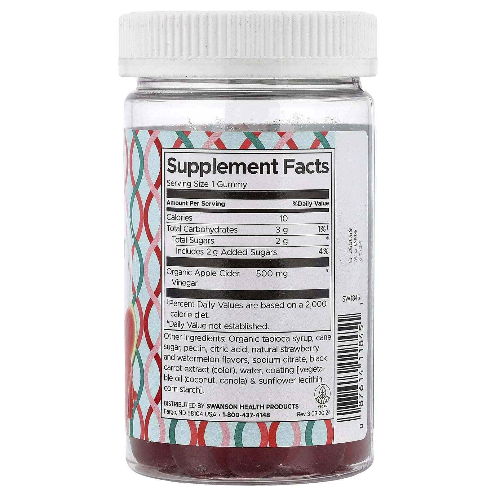 Универсальный яблочный уксус имеет множество полезных свойств, но «вкусный» не входит в их состав. Теперь вы можете наслаждаться всеми преимуществами яблочного уксуса без терпкого и вяжущего вкуса благодаря жевательным таблеткам Swanson с яблочным уксусом. Эти веганские жевательные таблетки на основе пектина содержат 500 мг органического яблочного уксуса в 1 порции со сладким и сочным клубнично-арбузным вкусом.