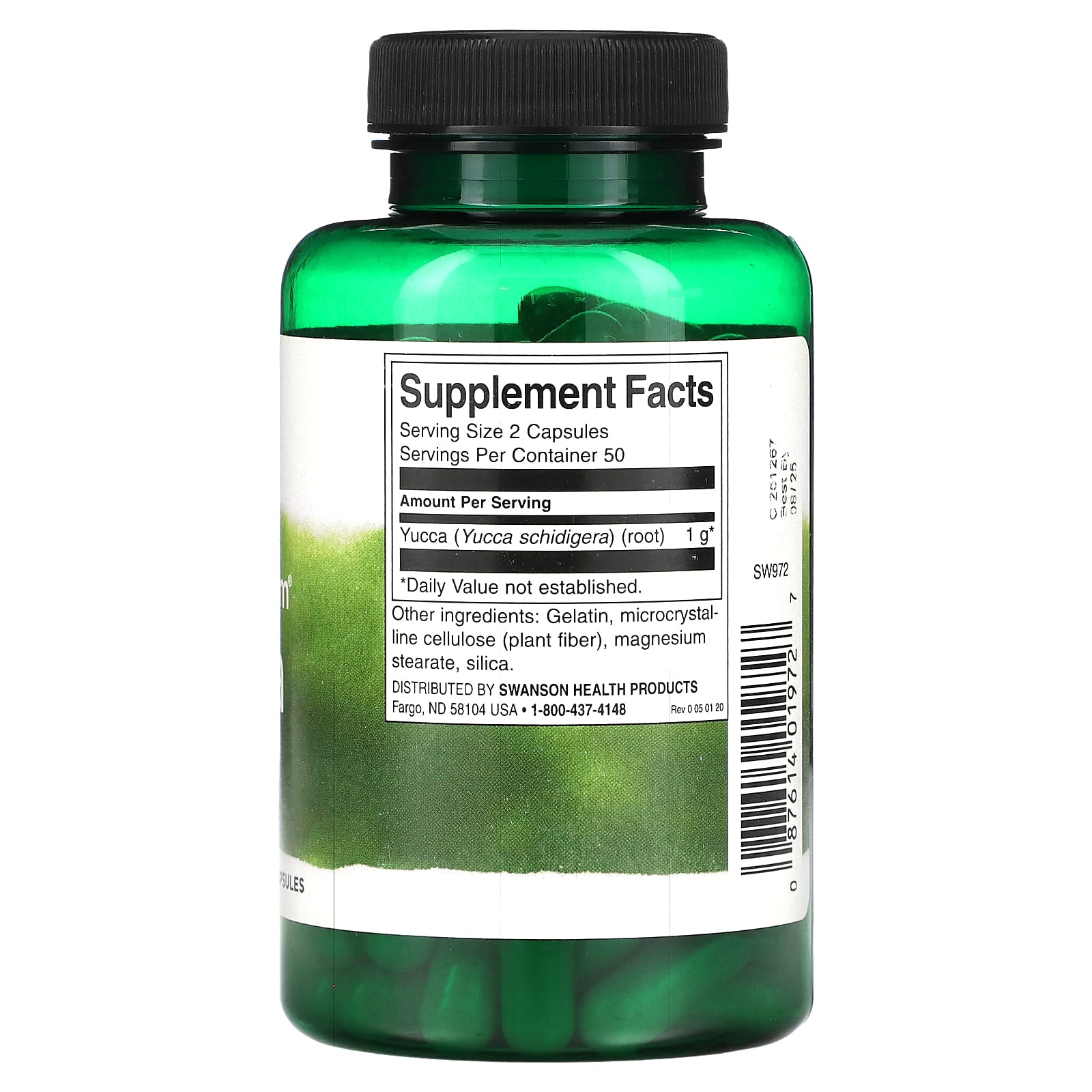 Юкка, произрастающая в Северной Америке, традиционно использовалась коренными американцами для поддержания здоровья суставов. Юкка Swanson, исторически используемая в качестве очистителя крови, является потрясающим тонизирующим средством, способствующим здоровью всего тела с помощью сапонинов. Каждая порция из двух капсул содержит один грамм порошка корня юкки.
