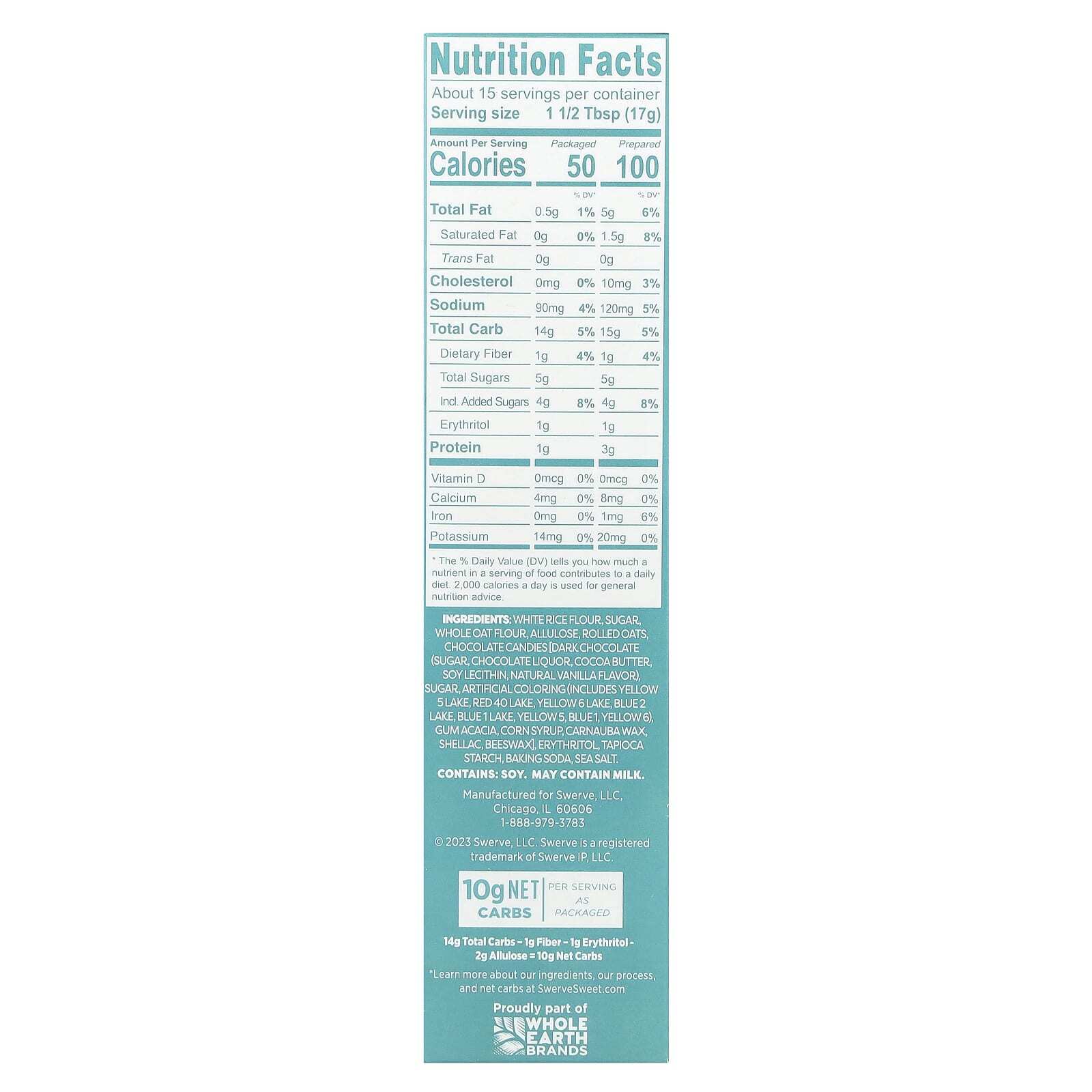 Подсластите свой день смесью для печенья Swerve Монстр. Это лакомство без глютена имеет влажную текстуру и насыщенный вкус. Это вкусное, удобное и простое в приготовлении печенье содержит 10 г чистых углеводов в одной порции, поэтому вы, несомненно, оцените превосходный вкус.