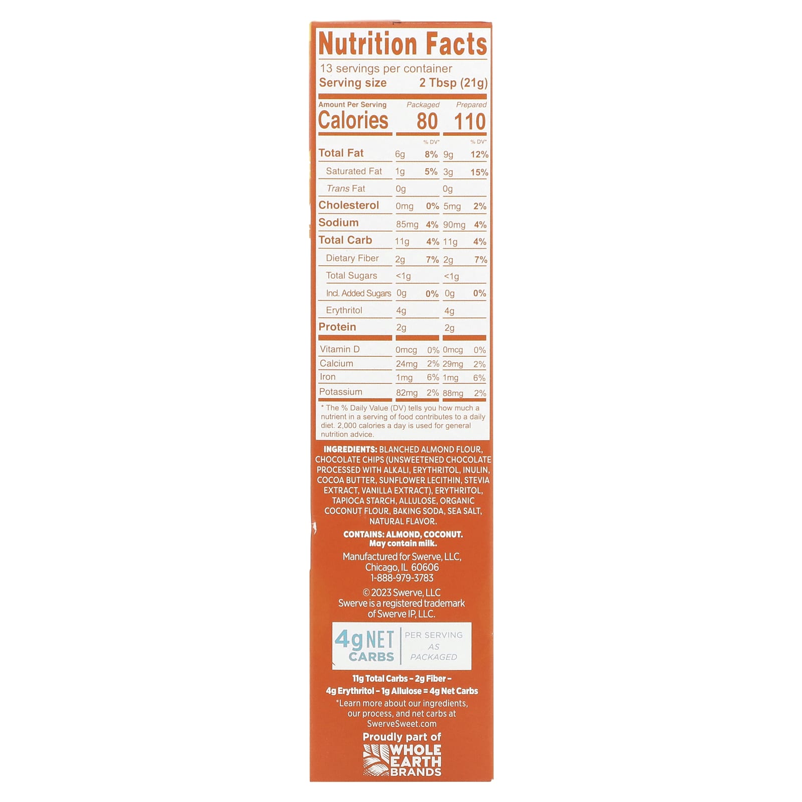Подсластите свой день смесью для печенья с шоколадной крошкой от Swerve, которая подходит для кетодиеты. Это лакомство без глютена и злаков, изготовленное из подсластителей Swerve без сахара и подходящих для кетодиеты ингредиентов, имеет влажную текстуру и насыщенный вкус. Вкусное и простое в приготовлении средство для снижения углеводов еще никогда не было настолько вкусным.