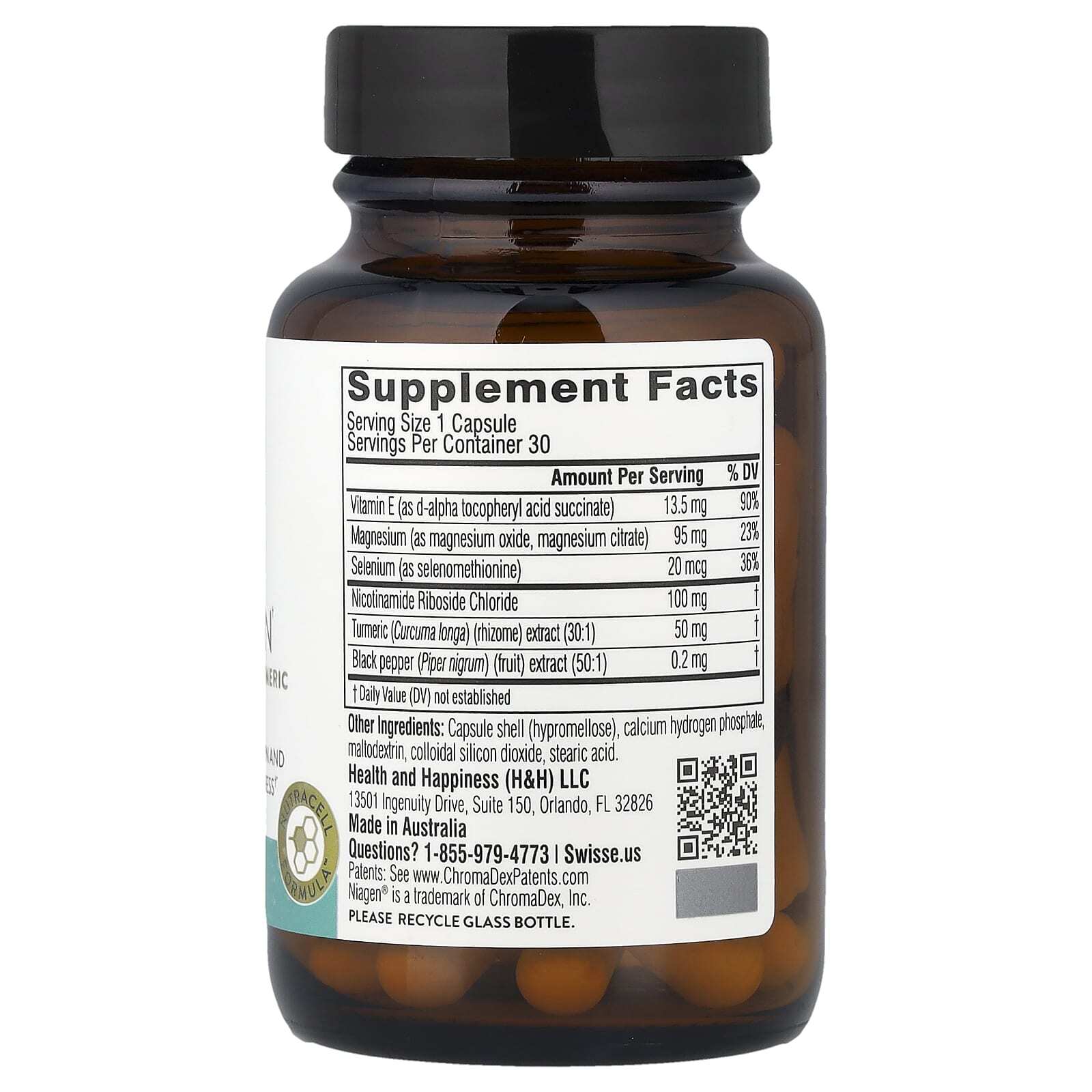 Никотинамид рибозид хлорид (NR, Niagen®), предшественник никотинамида аденин динуклеотида (NAD), важен для энергетического обмена на клеточном уровне. Он является биоактивным источником никотинамида, поддерживающего выработку энергии и жизненные силы. Swisse Plus NAD + Calm Skin содержит уникальный состав, содержащий NR, куркуму и магний, которые обеспечивают преимущества для красоты премиального качества.
