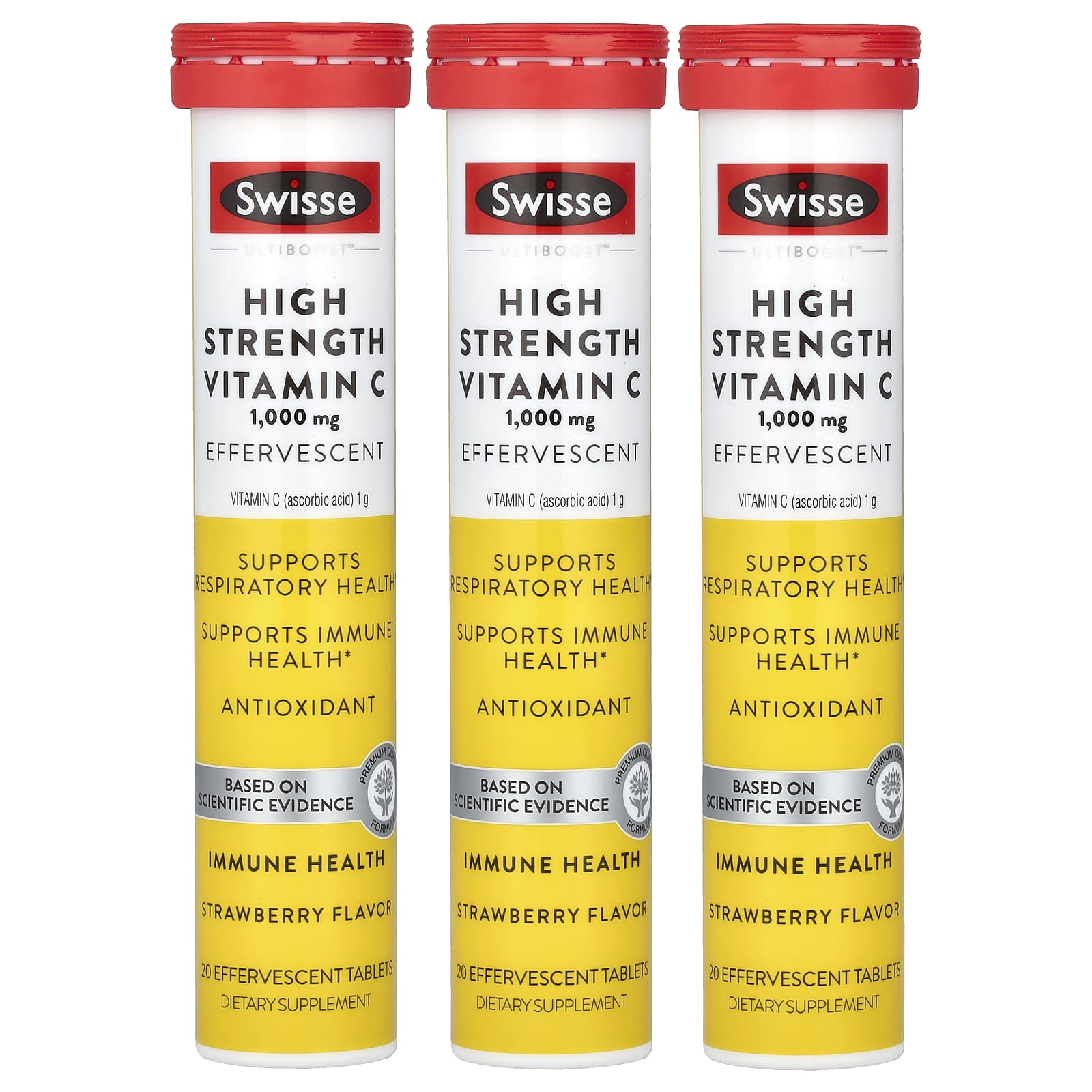Шипучий продукт Swisse Ultiboost High Strength Vitamin C был разработан на основе научных данных и обеспечивает удобную ежедневную дозу витамина C. Эта формула со вкусом натуральной клубники является альтернативой для тех, кто испытывает трудности с глотанием больших таблеток или капсул.