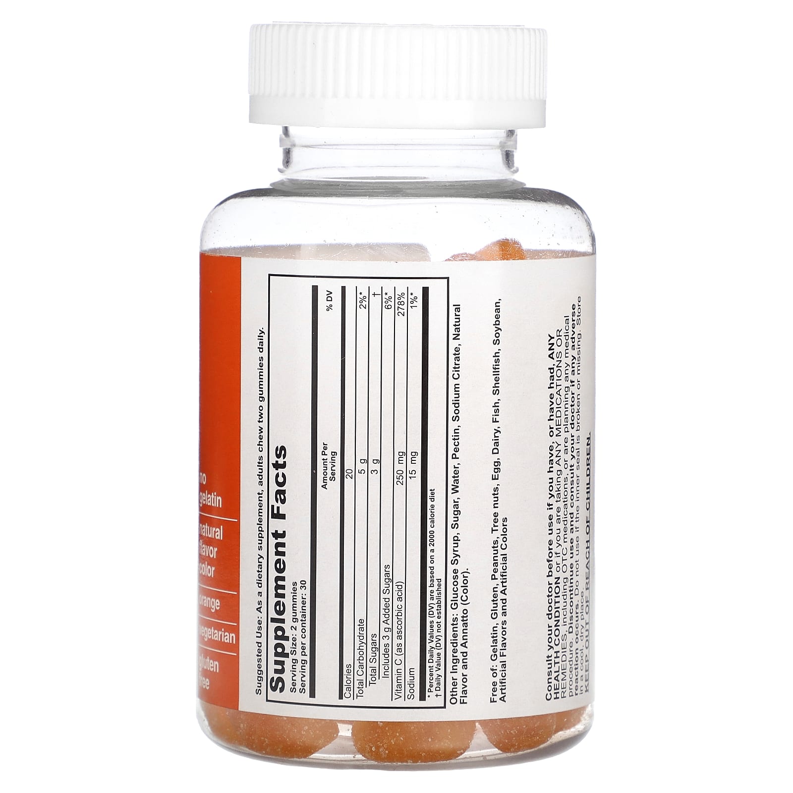Не содержит Желатин, глютена, арахиса, древесные орехи, яйца, молочных продуктов, рыбы, моллюсков, соя, искусственных ароматизаторов и искусственных красителей.