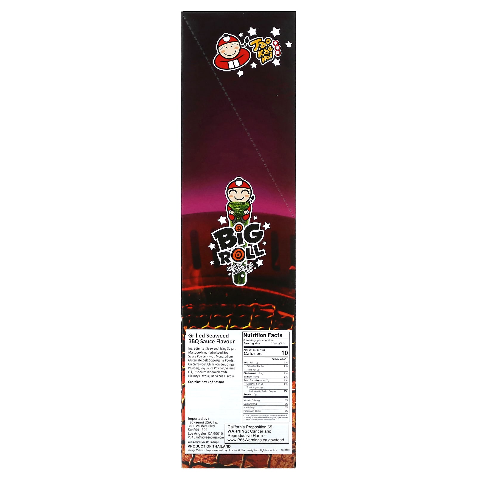 морские водоросли, сахарная пудра, мальтодекстрин, порошок гидролизованного соевого соуса (HVP), однонатриевый глутамат, соль, специи (чесночный порошок, луковый порошок, порошок из чили, имбирный порошок), порошок соевого соуса, масло семян кунжута, динатрий рибонуклеотид, ароматизатор гикори, ароматизатор для барбекю.
