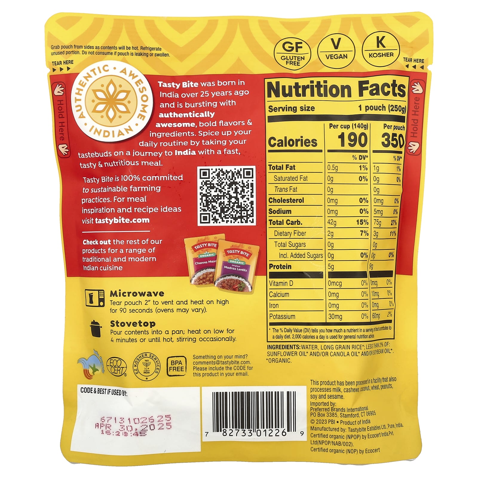 Микроволновая печь: Разорвите пакет 2 дюйма, чтобы выпустить его, и нагревайте на высокой температуре в течение 90 секунд (духовки могут отличаться).