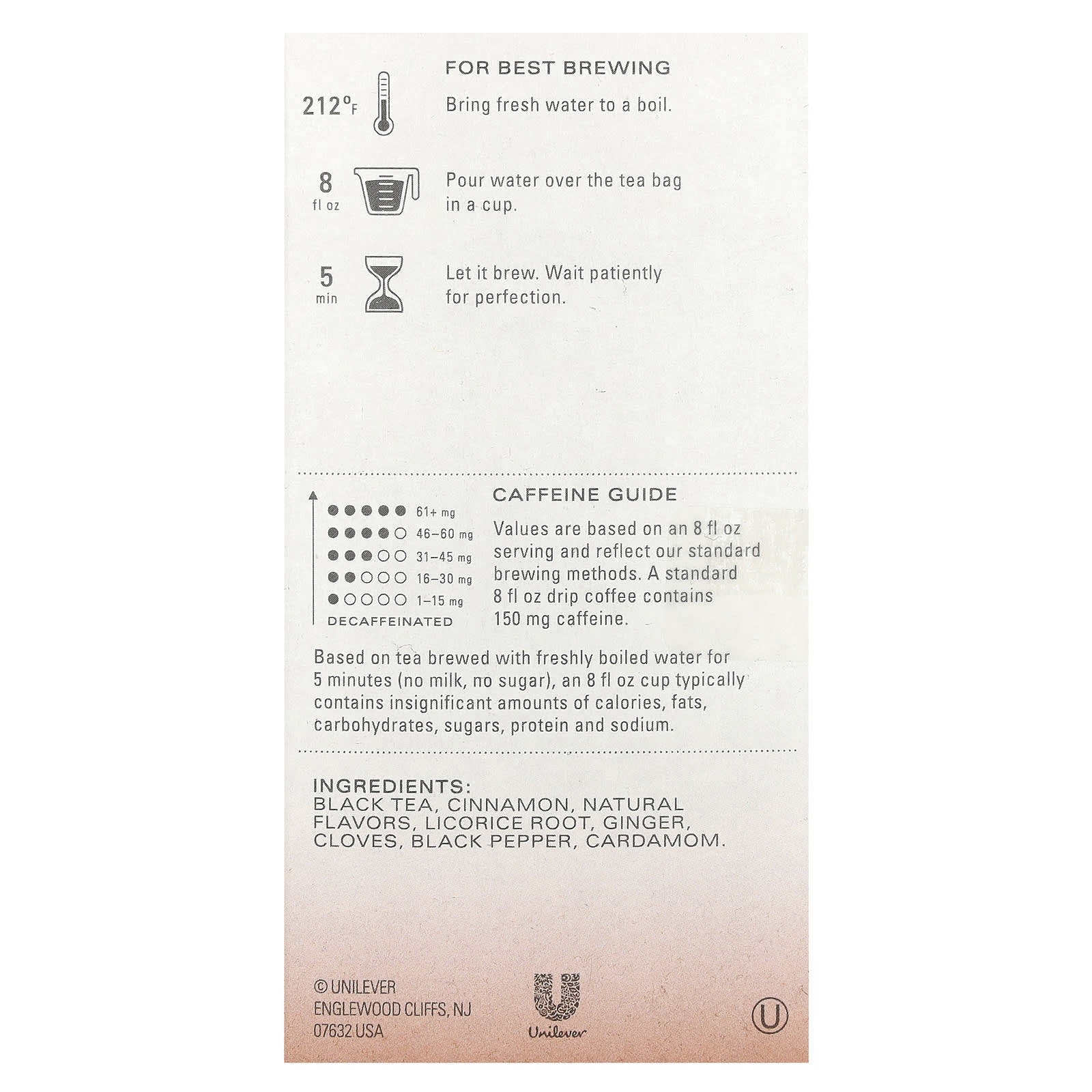 Черный чай, корица, натуральные ароматизаторы, корень солодки, имбирь, гвоздика, черный перец, кардамон.