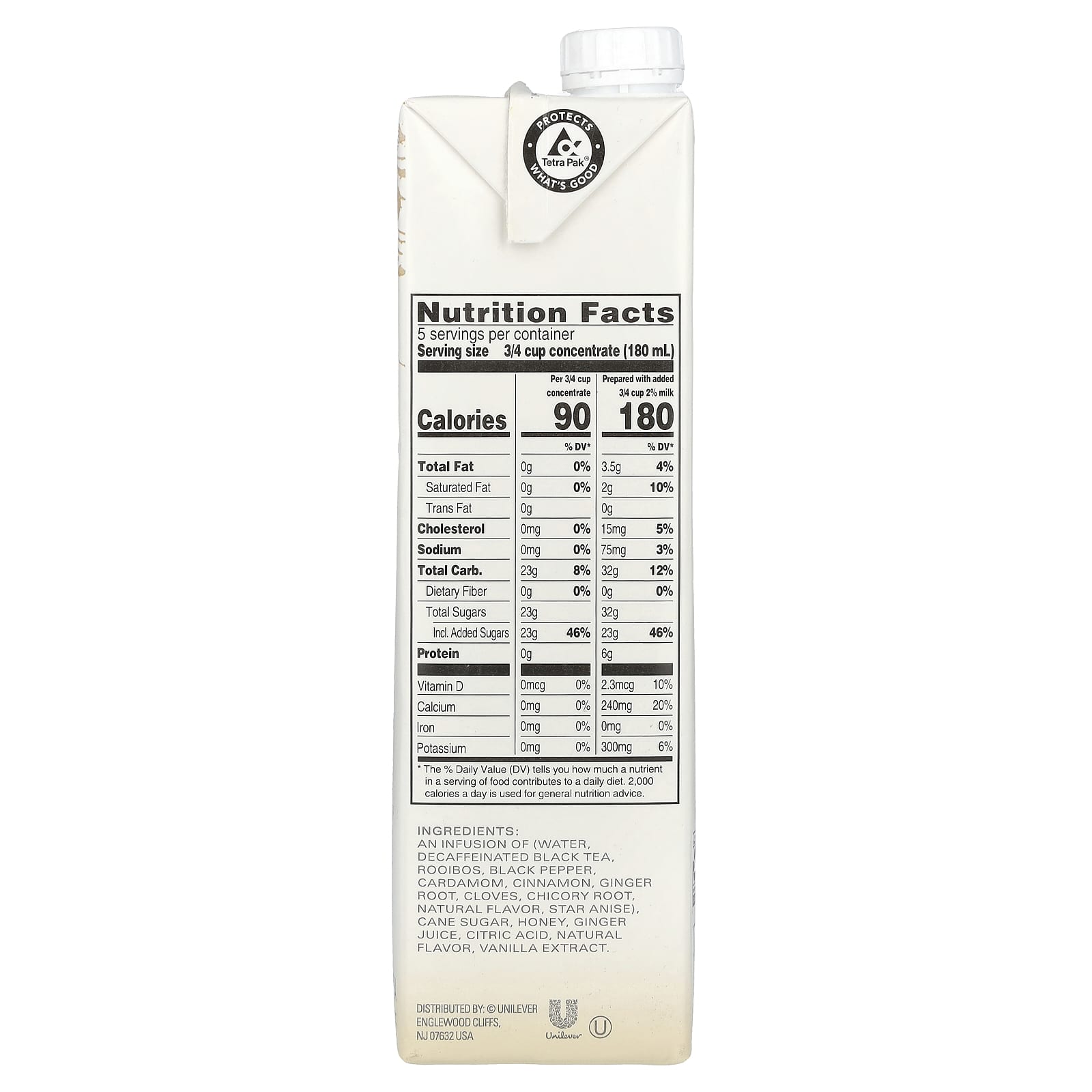 Встряхните картонную коробку и смешайте равные части концентрата чая без кофеина с молоком или любым заменителем молока.