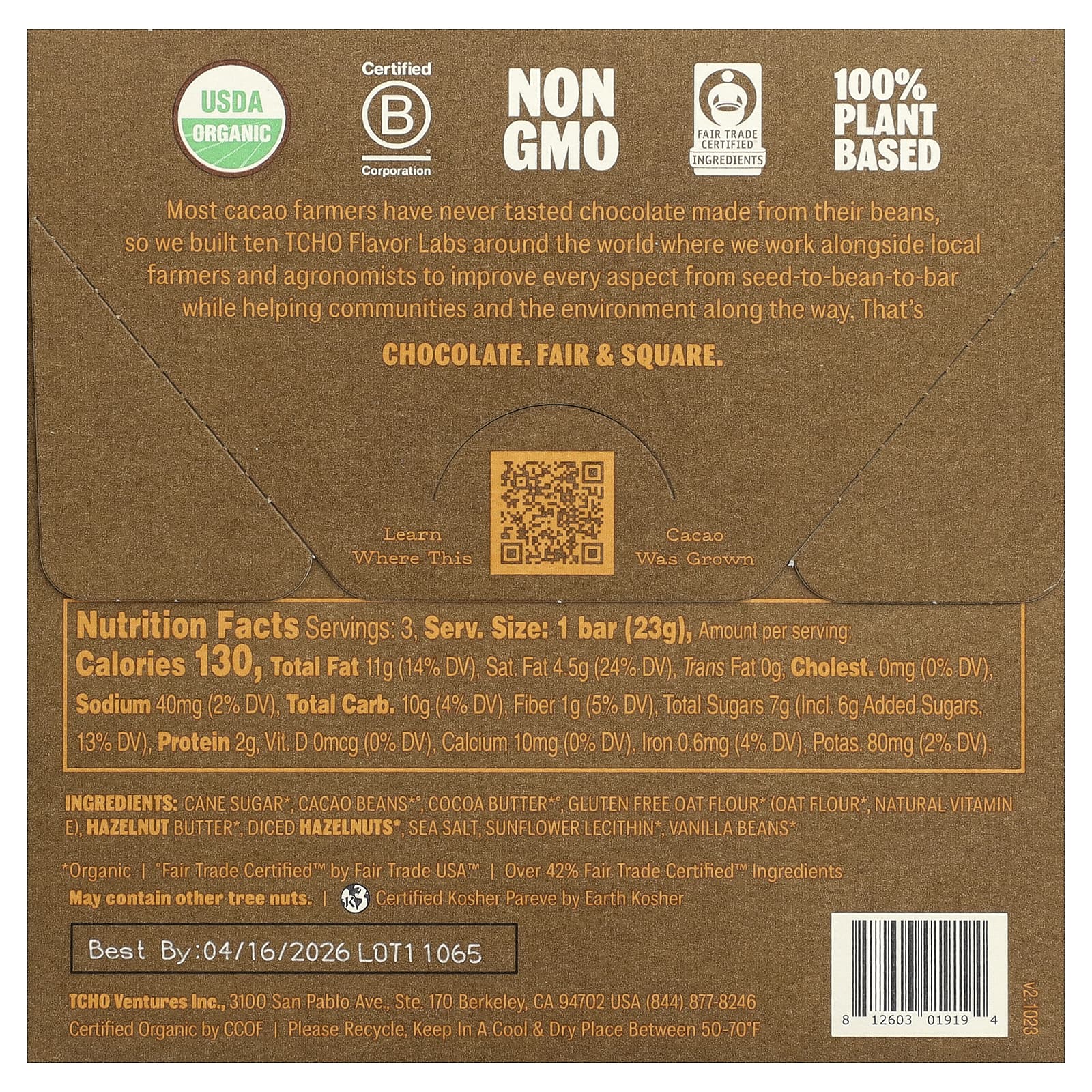 Тростниковый сахар*, какао-бобы*º, какао-масло*º, овсяная мука без глютена* (овсяная мука*, натуральный витамин Е), паста из фундука*, нарезанный фундук*, морская соль, подсолнечный лецитин*, стручки ванили.