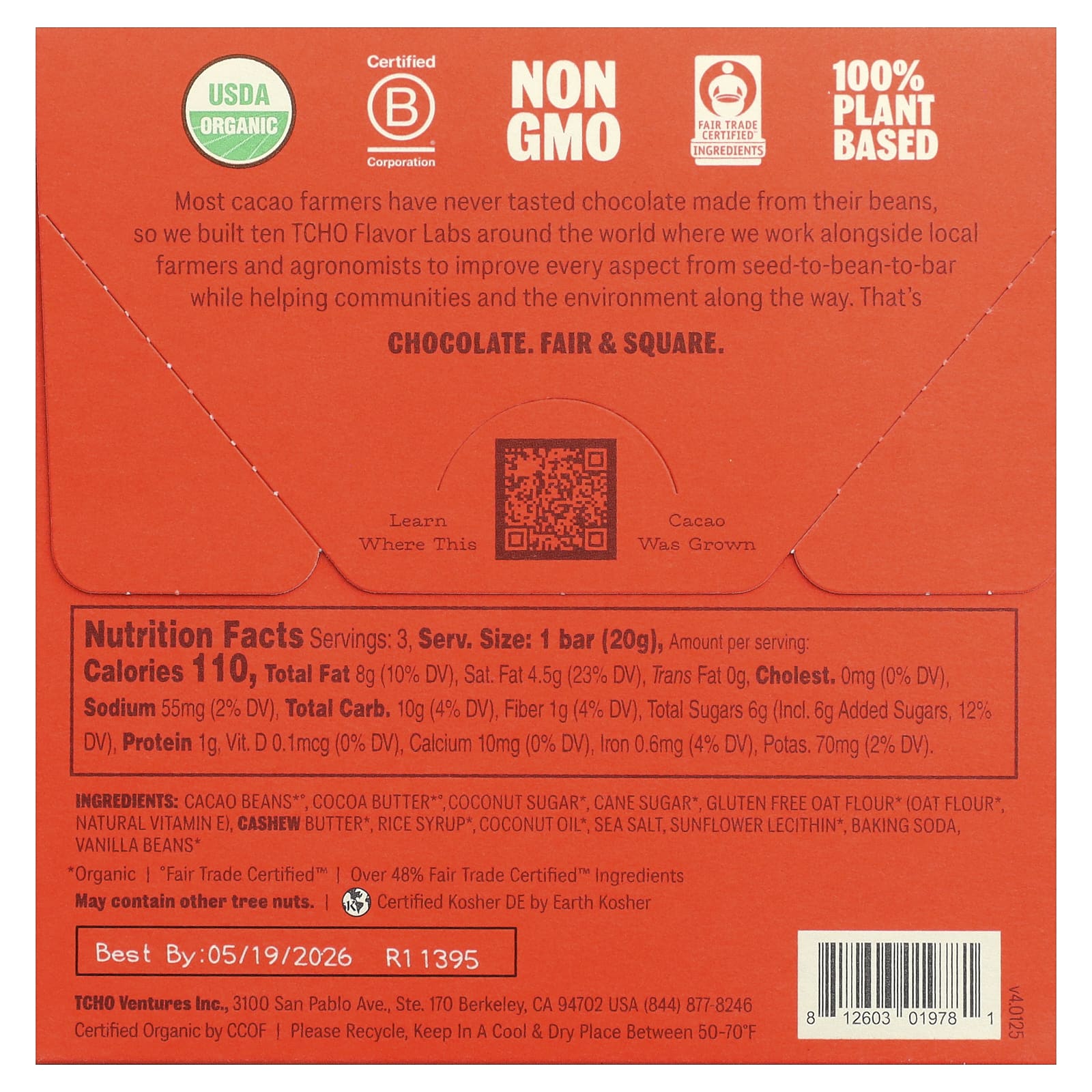 Какао-бобы*º, какао-масло*º, кокосовый сахар*, тростниковый сахар*, овсяная мука без глютена* (овсяная мука*, натуральный витамин Е), паста из кешью*, рисовый сироп*, кокосовое масло*, морская соль, подсолнечный лецитин*, пищевая сода, стручки ванили*.