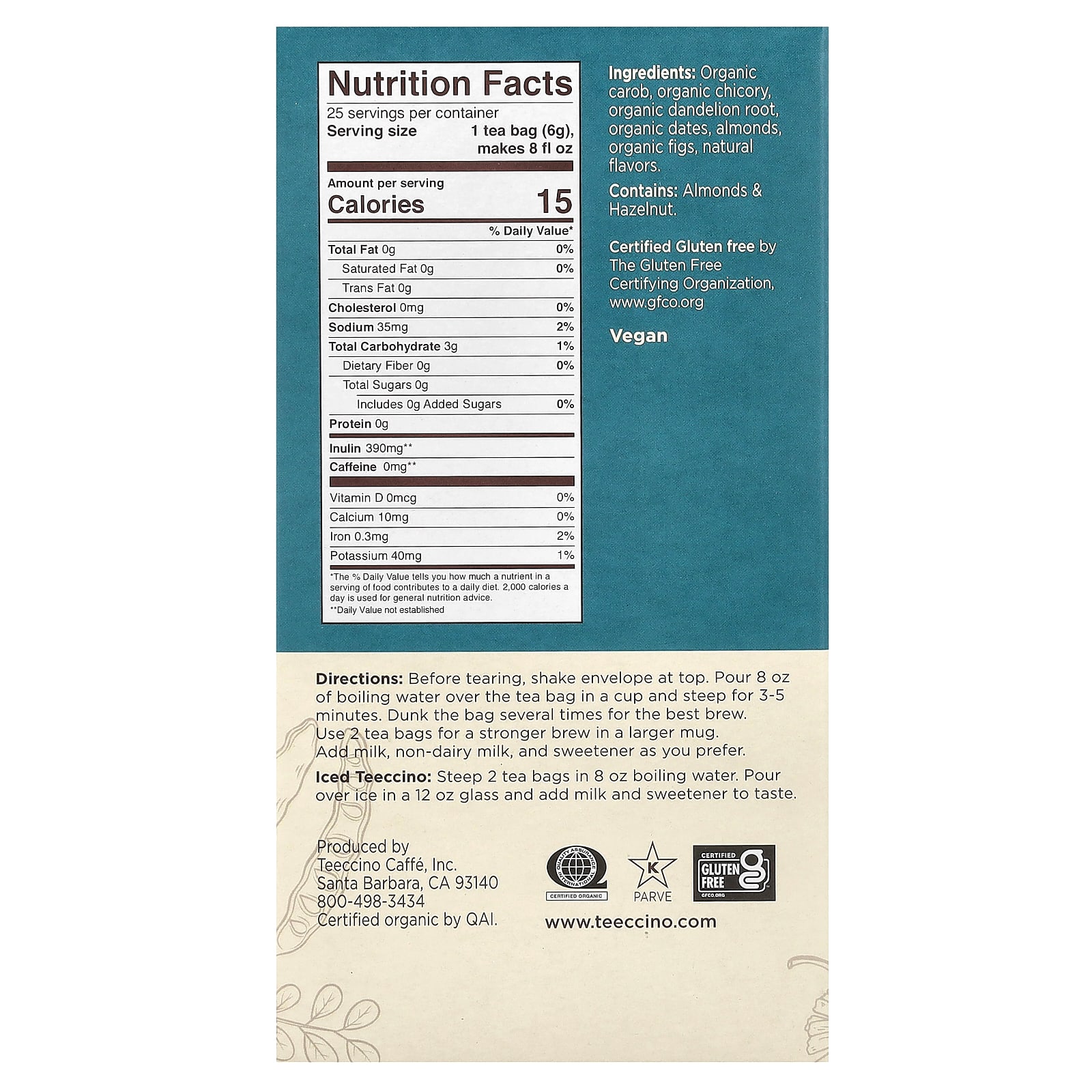Teeccino, чай из обжаренных трав, одуванчик, карамель и орех, без кофеина, 25 чайных пакетиков, 150 г (5,3 унции)