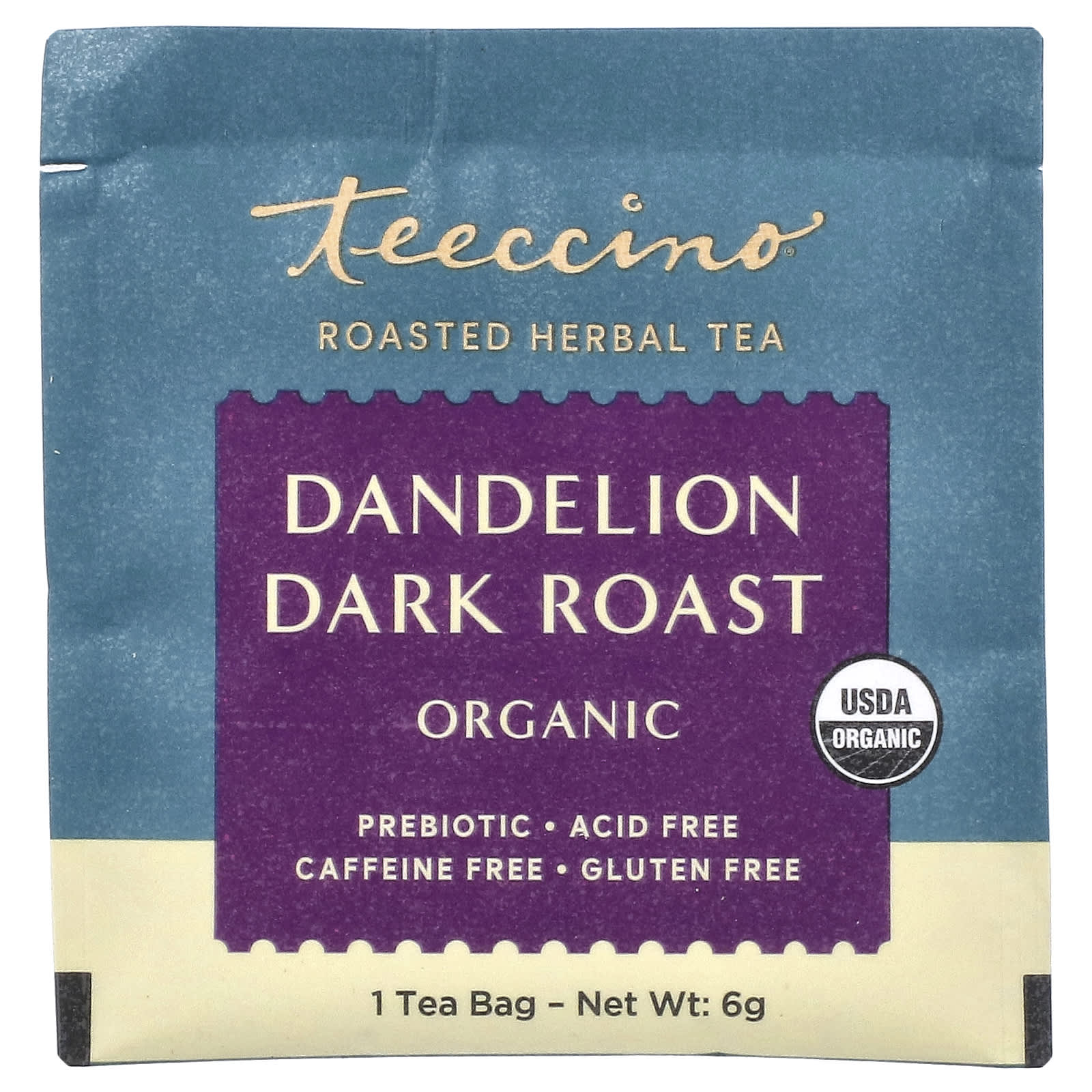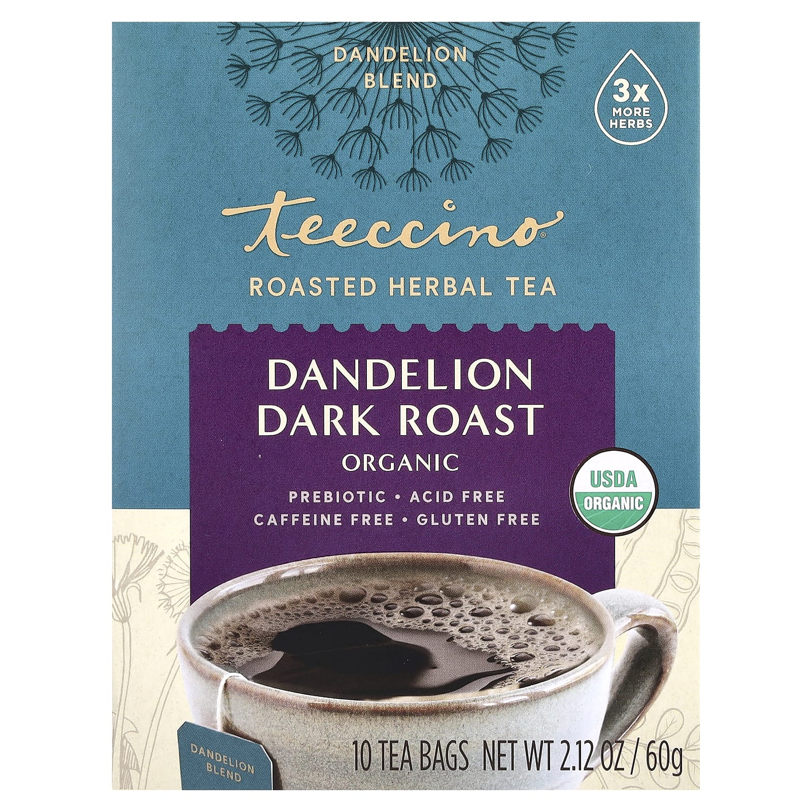 Teeccino, Органический обжаренный травяной чай, темная обжарка с одуванчиком, без кофеина, 10 чайных пакетиков, 60 г (2,12 унции)