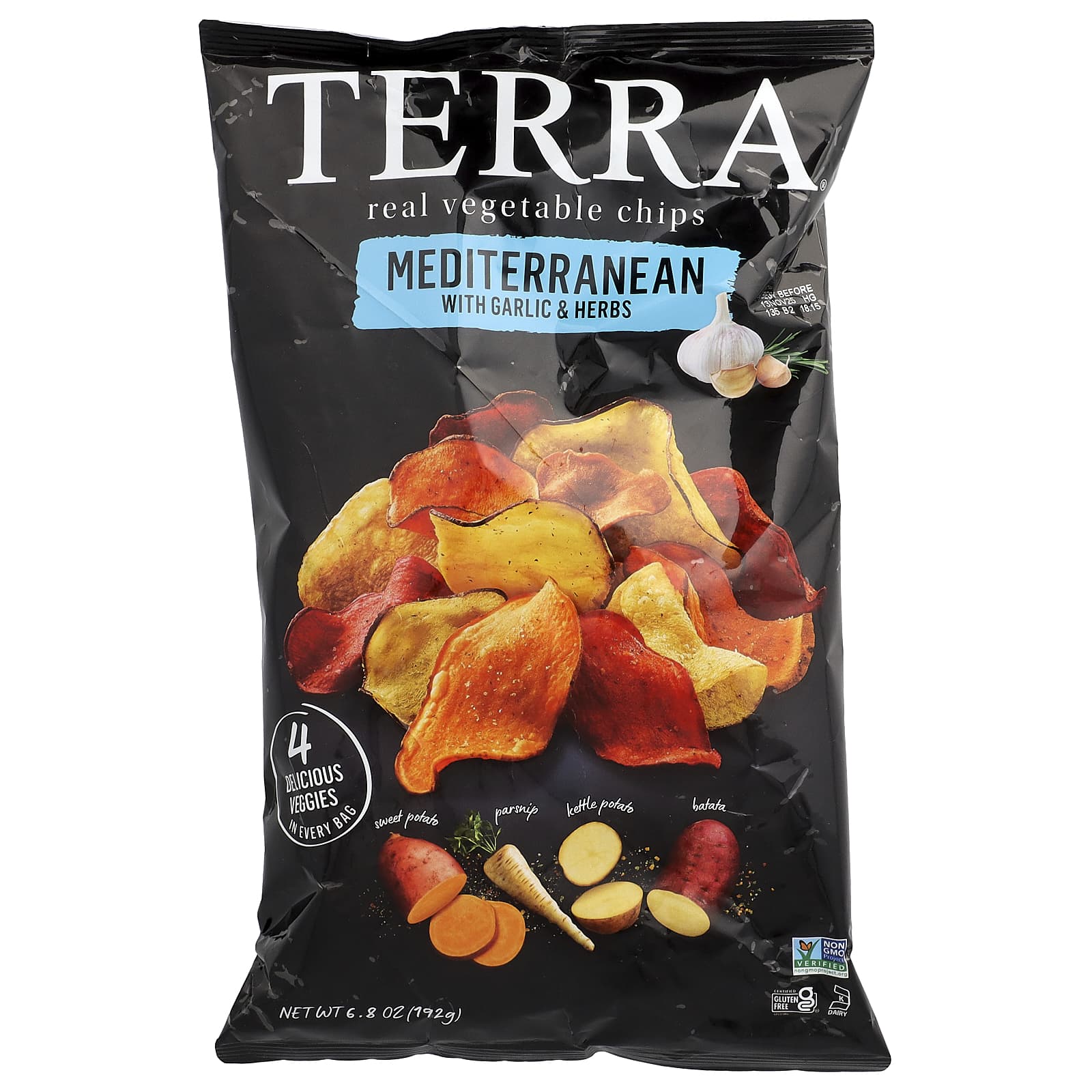 Terra, настоящие овощные чипсы, средиземноморские с чесноком и травами, 192 г (6,8 унции)