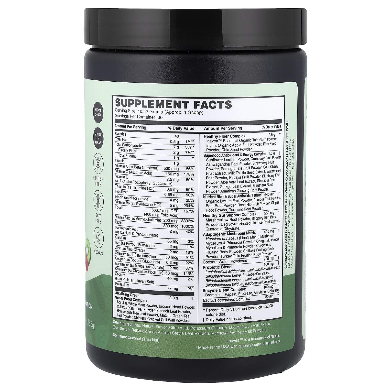 | Подщелачивающий зеленый супер пищевой комплекс Порошок из цельного растения спирулины, порошок из головок брокколи, порошок из листьев капусты (капуста), порошок из листьев шпината, порошок из листьев хрена, порошок из листьев зеленого чая матча, порошок из хлореллы | 2,9 г | † |