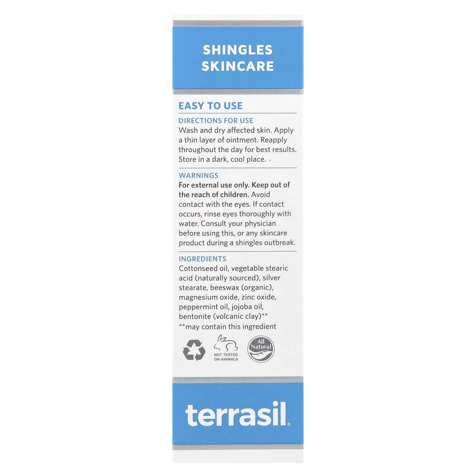 Только для наружного применения. Хранить в недоступном для детей месте. Избегать попадания в глаза. При попадании в глаза тщательно промойте их водой. Проконсультируйтесь с врачом перед использованием этого или любого другого продукта для ухода за кожей во время вспышки опоясывающего лишая.