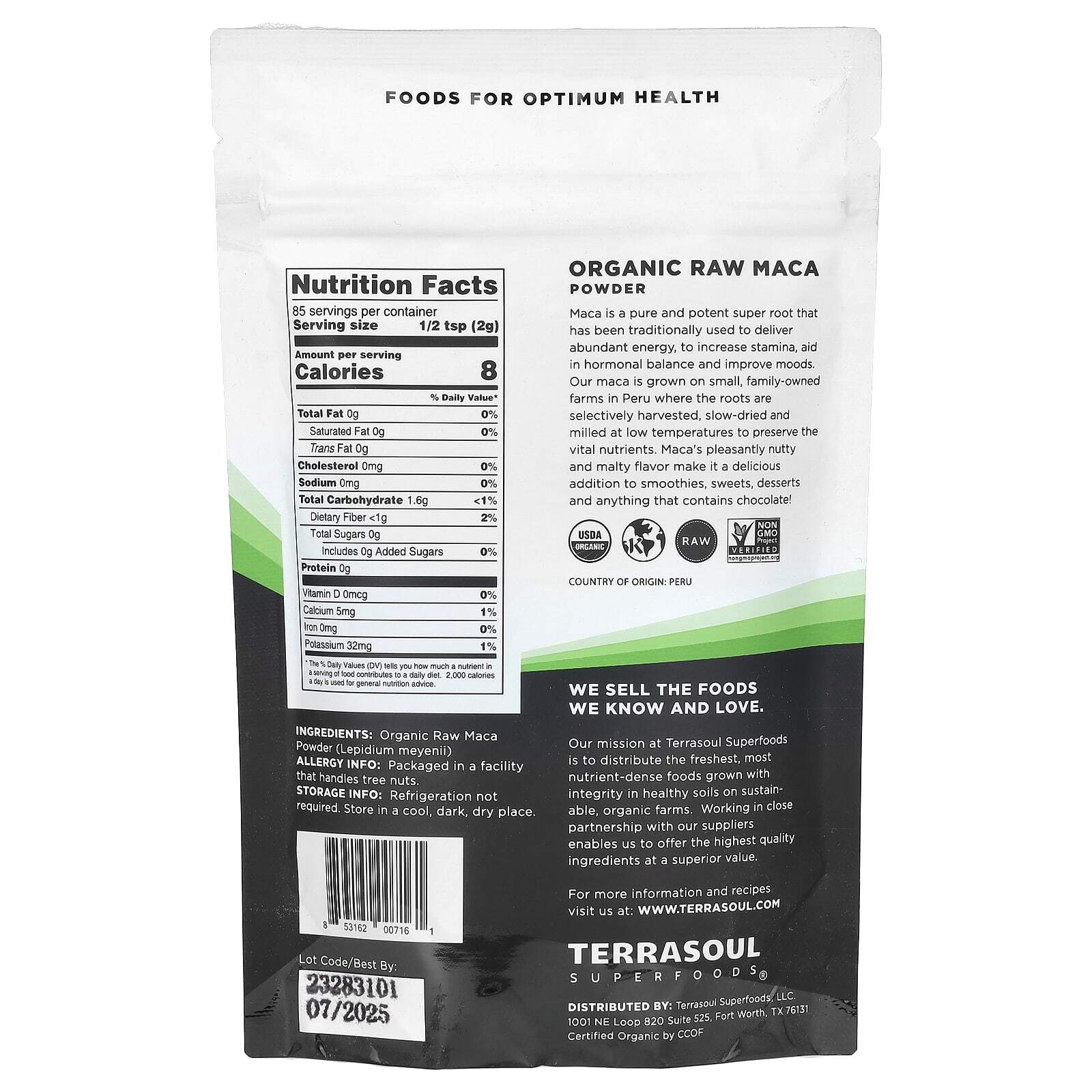 Миссия Terrasoul Superfoods — распространять самые свежие и богатые питательными веществами продукты, выращенные добросовестно на здоровой почве на экологичных органических фермах. Тесное сотрудничество с нашими поставщиками позволяет нам предлагать ингредиенты высочайшего качества по превосходной цене.