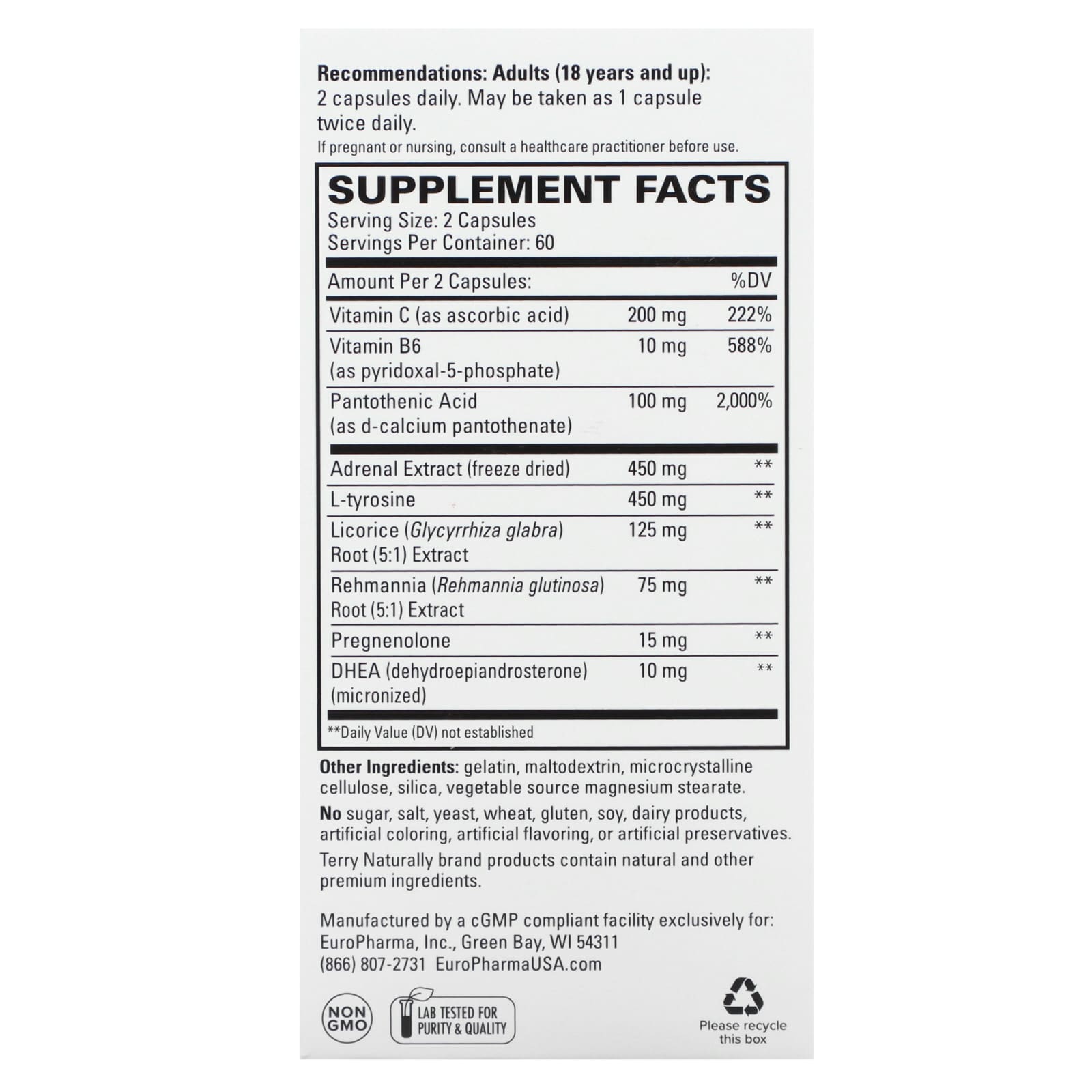 | Экстракт надпочечников (сублимированный) | 450 мг | ** |