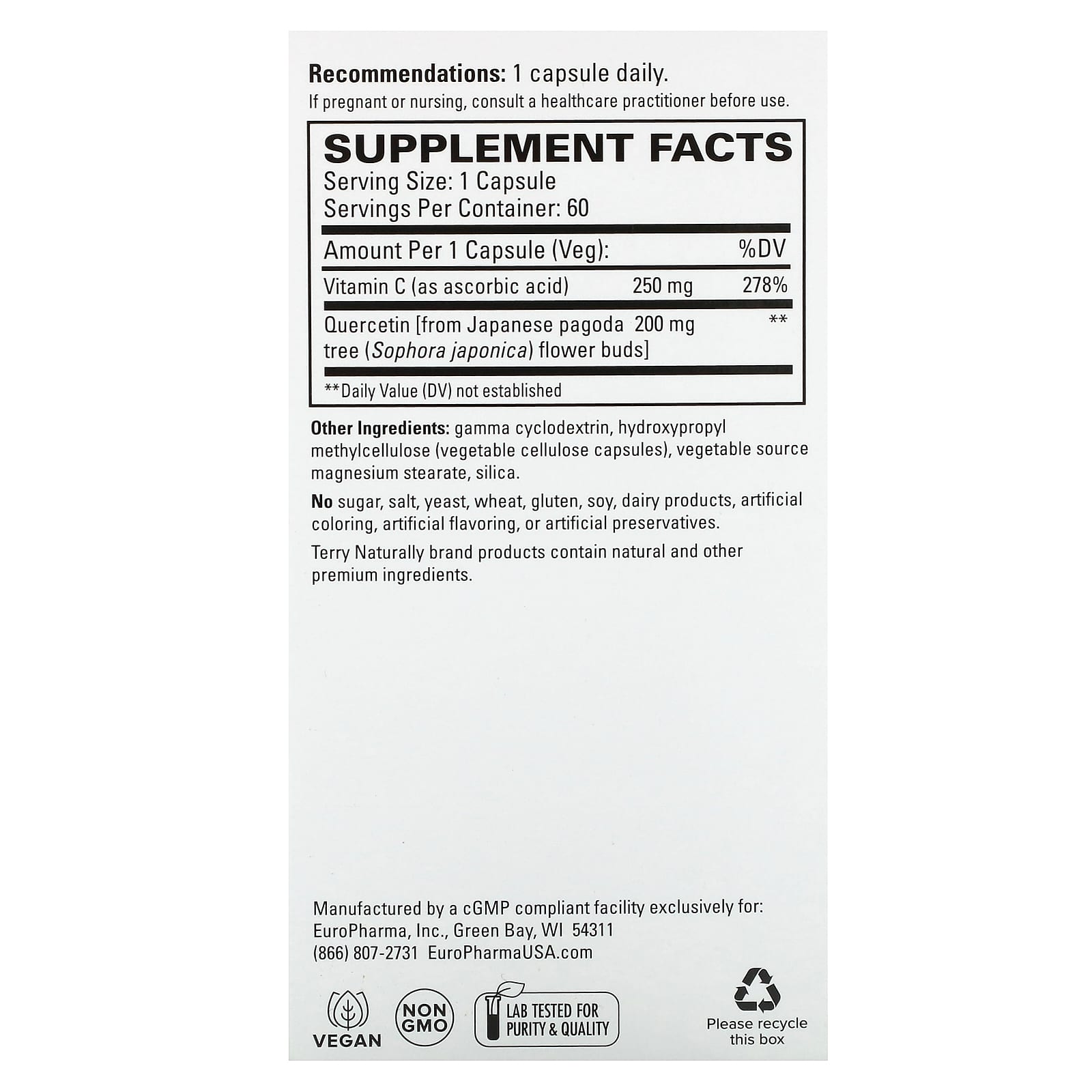 Витамин C является ключевым питательным веществом для здоровой иммунной функции, поэтому его стабильный уровень — лучший выбор для надежной ежедневной поддержки. В качестве бонуса витамин С помогает усваивать кверцетин, делая его еще более эффективным.